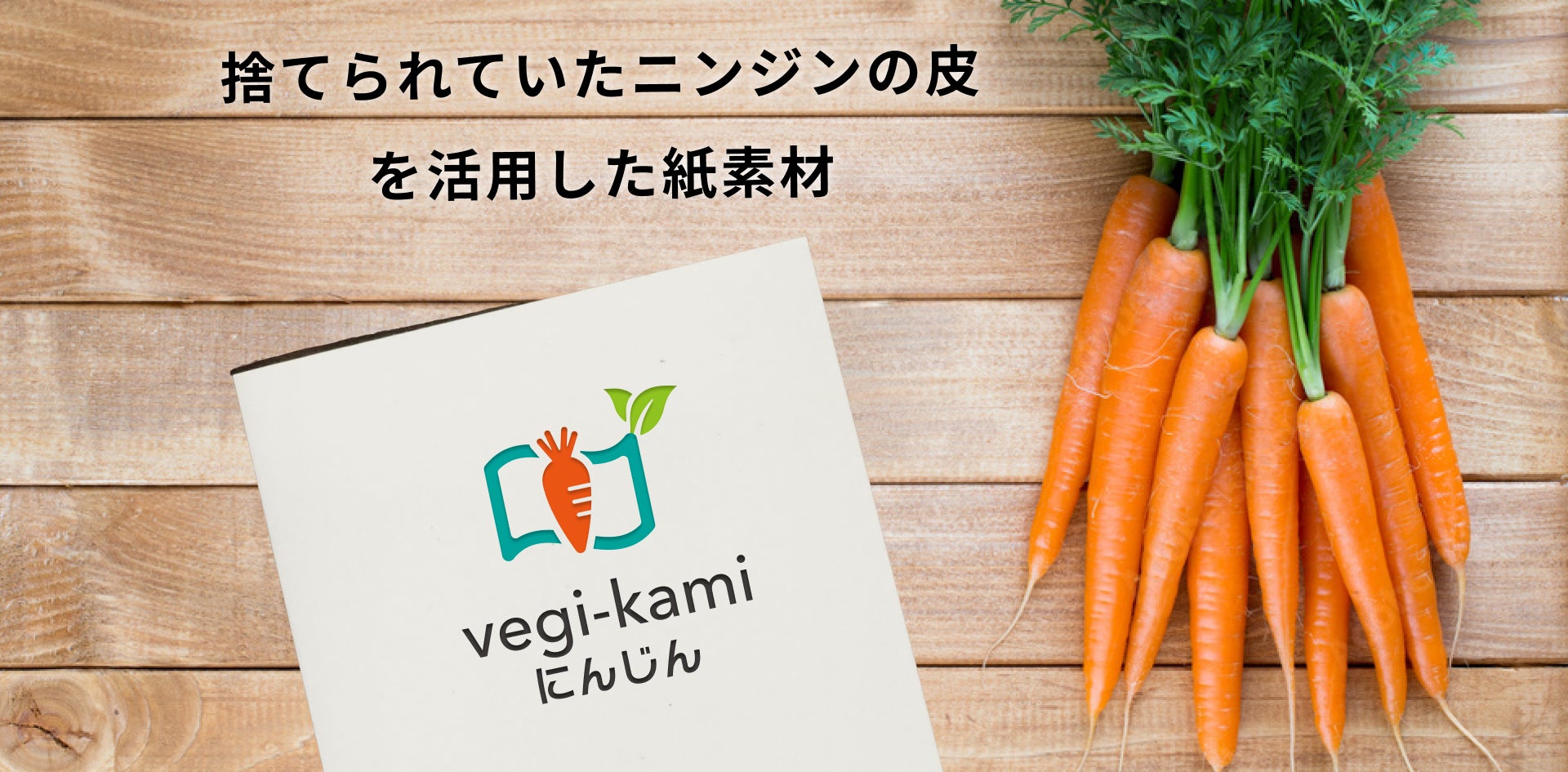 捨てられていたニンジンの皮を活用した紙素材「vegi-kami にんじん」の開発に成功。食品のサブスクリプションサービスを提供するオイシックス・ラ・大地株式会社と協業開発しました。