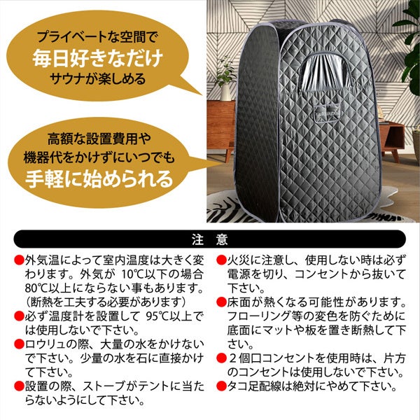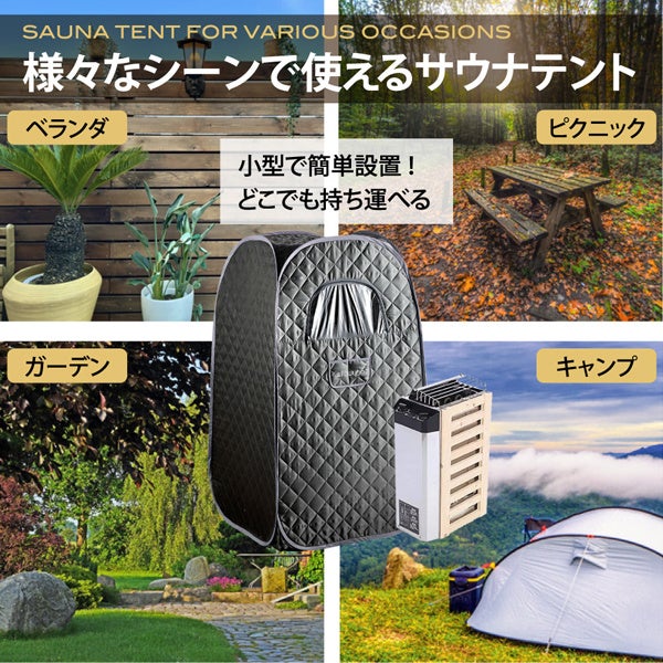 家庭用コンセントで楽しめる、持ち運びができるサウナテント