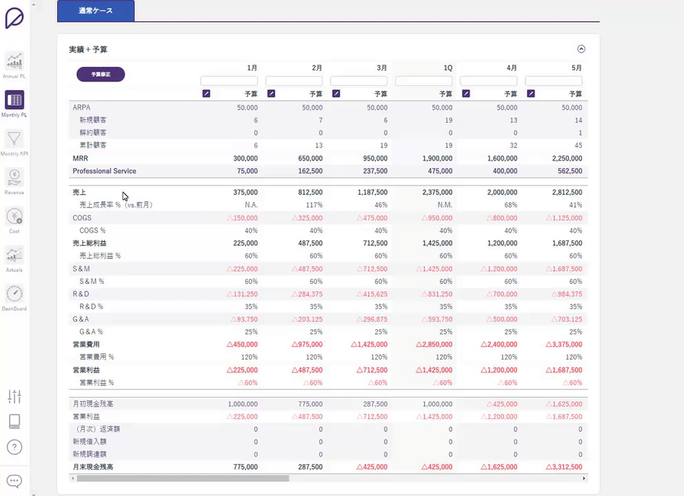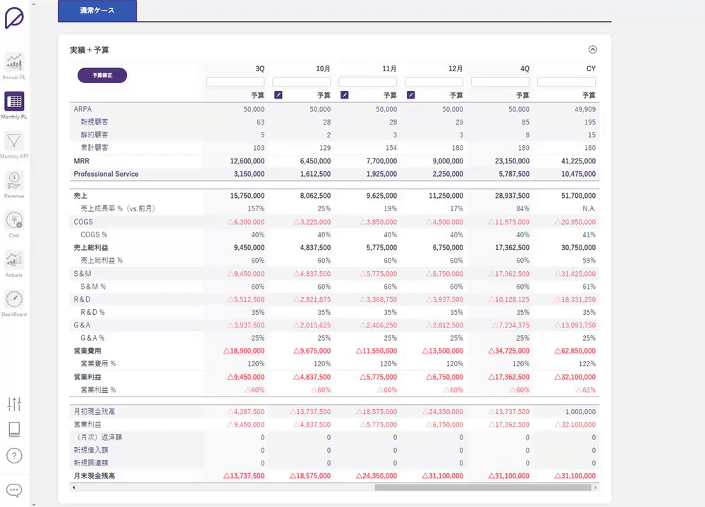月次で予実管理できる「Monthly KPI」、予算の上方・下方修正機能を実装