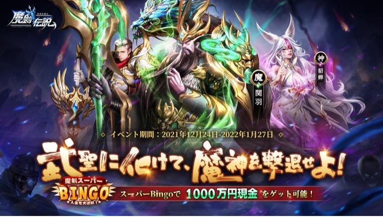 日本で話題になっている放置チェットMMORPG『魔剣伝説』より、見逃し厳禁の最新情報が到着しました!『魔剣伝説』新春記念祭、2021年12月24日(金)に最高潮に達しました。スーパーBingoイベントの開催予定!無料で楽しめる「1000万円賞金」のチャンスを独占する!さらに、期間限定キャラ「関羽」と「貂蝉」がまもなく登場!