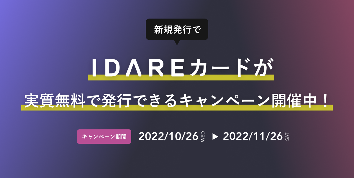 「IDARE(イデア)」の3Dセキュア対応を記念して、ご好評をいただいていたリアルカード発行実質無料キャンペーンを開催いたします。