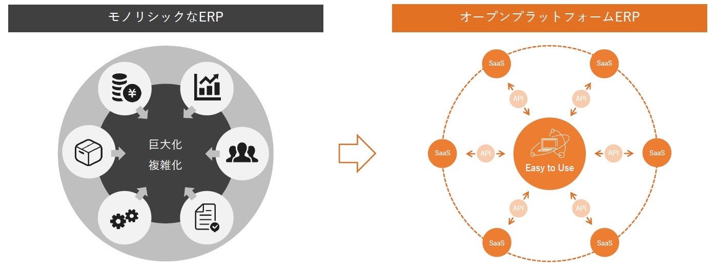 本来企業のバックオフィスに創造性をもたらし、事業変革・推進を加速するべきERPが巨大化し、モノリシックなERPとなり現状十分に機能していない状況を打破する為に生み出されるものです。クラウド時代の最新テクノロジーを活用し、顧客がストレスを感じることなく利用できるUI/UXを導入、そして多くのSaaS系ベンダーとより密な関係を構築することで、企業の社会課題を解決する次世代のERPです。