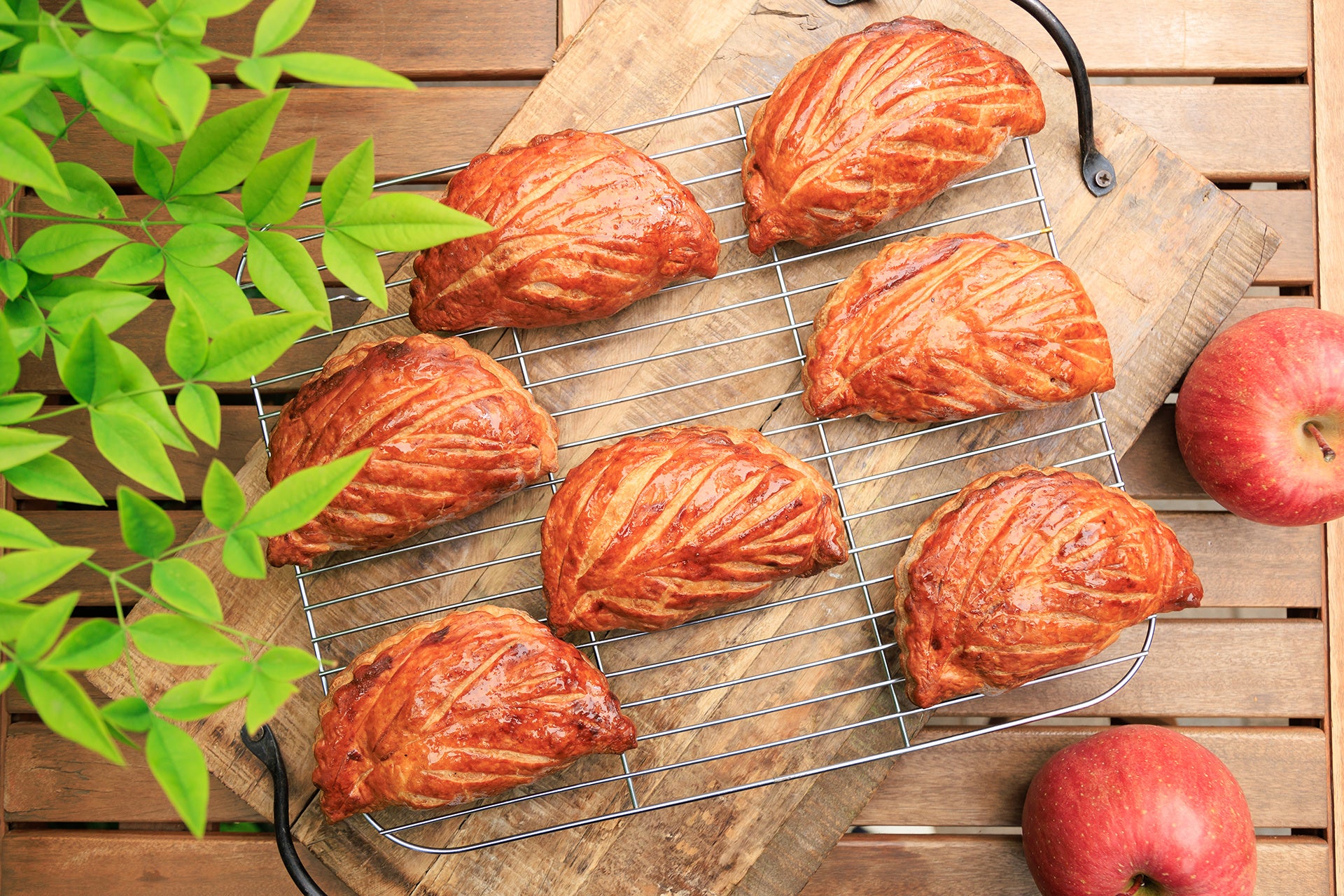 薄くてパリパリの生地の中に角切りのリンゴを入れて焼き上げ、後入れの上品なカスタードクリームがポイントの、フランス風のレシピ「ショソン・オ・ポム」を再現しました。