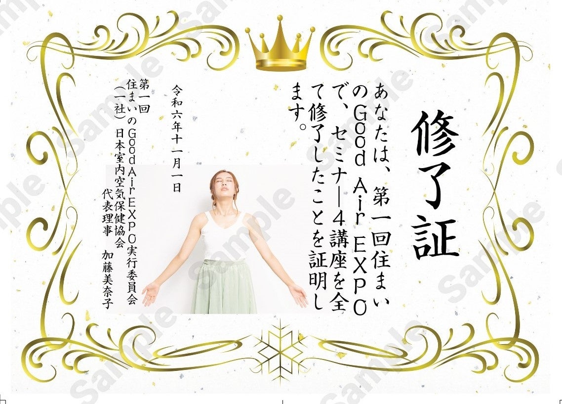 ・すべてのセミナーを受講された方は、住まいのGoodAirEXPO修了証書を発行