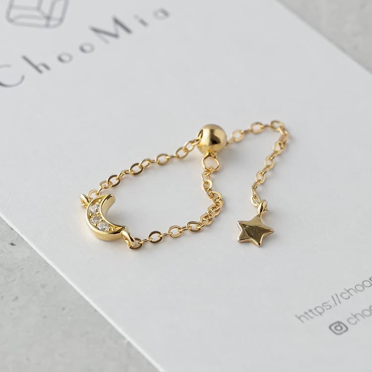 - 【18K/S925】ムーン×スターモチーフチェーンリング
