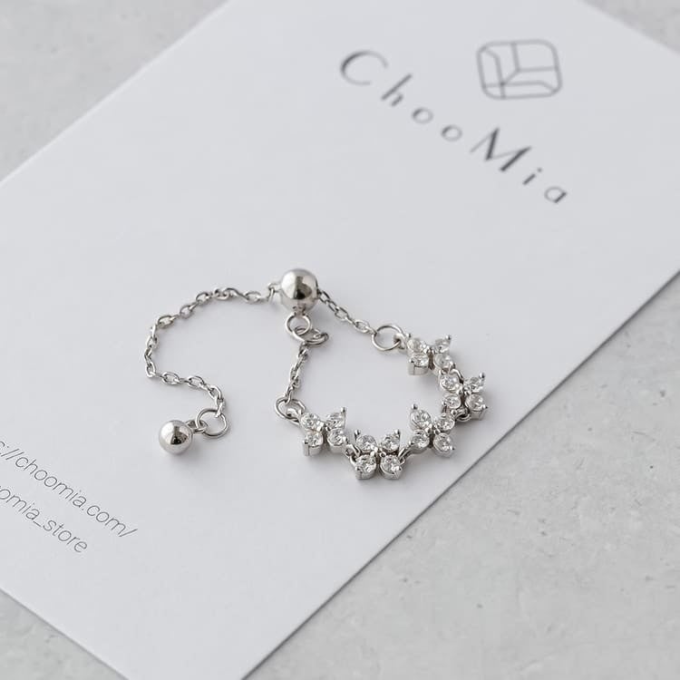 - 【S925】ジルコンフラワーモチーフチェーンリング