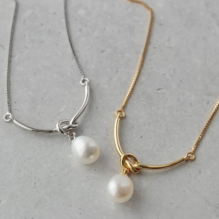 - 【S925/18K】ノットライン×1粒淡水パールネックレス