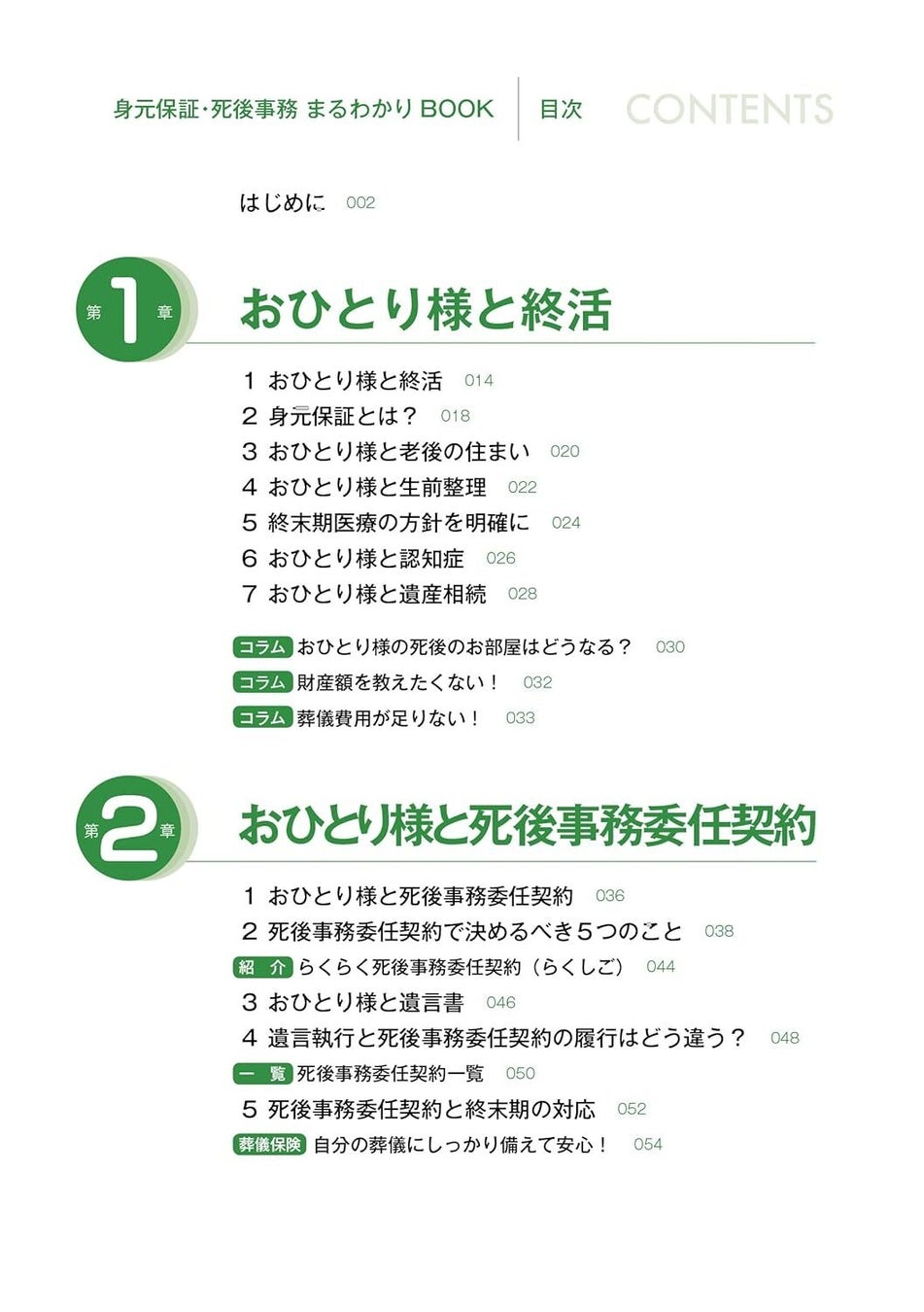 本書では、実際の現場で培ってきた知見をもとに、「身元保証」や「死後事務」の現状と課題、そして今後必要とされる備えについて、多角的に解説しています。