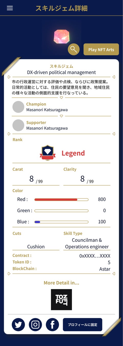 スキルジェム生成の第二弾は、元システムエンジニアで現在北名古屋市議会議員の桂川将典さんです。 ベッドタウンから文教都市へのレベルアップを将来ビジョンとして掲げ、行財政改革、DX推進、英語教育分野に注力されています。桂川さんのスキルジェムと紹介記事は、下記をご覧ください。(記事内では、実際の動くジェムも見ることができます。)