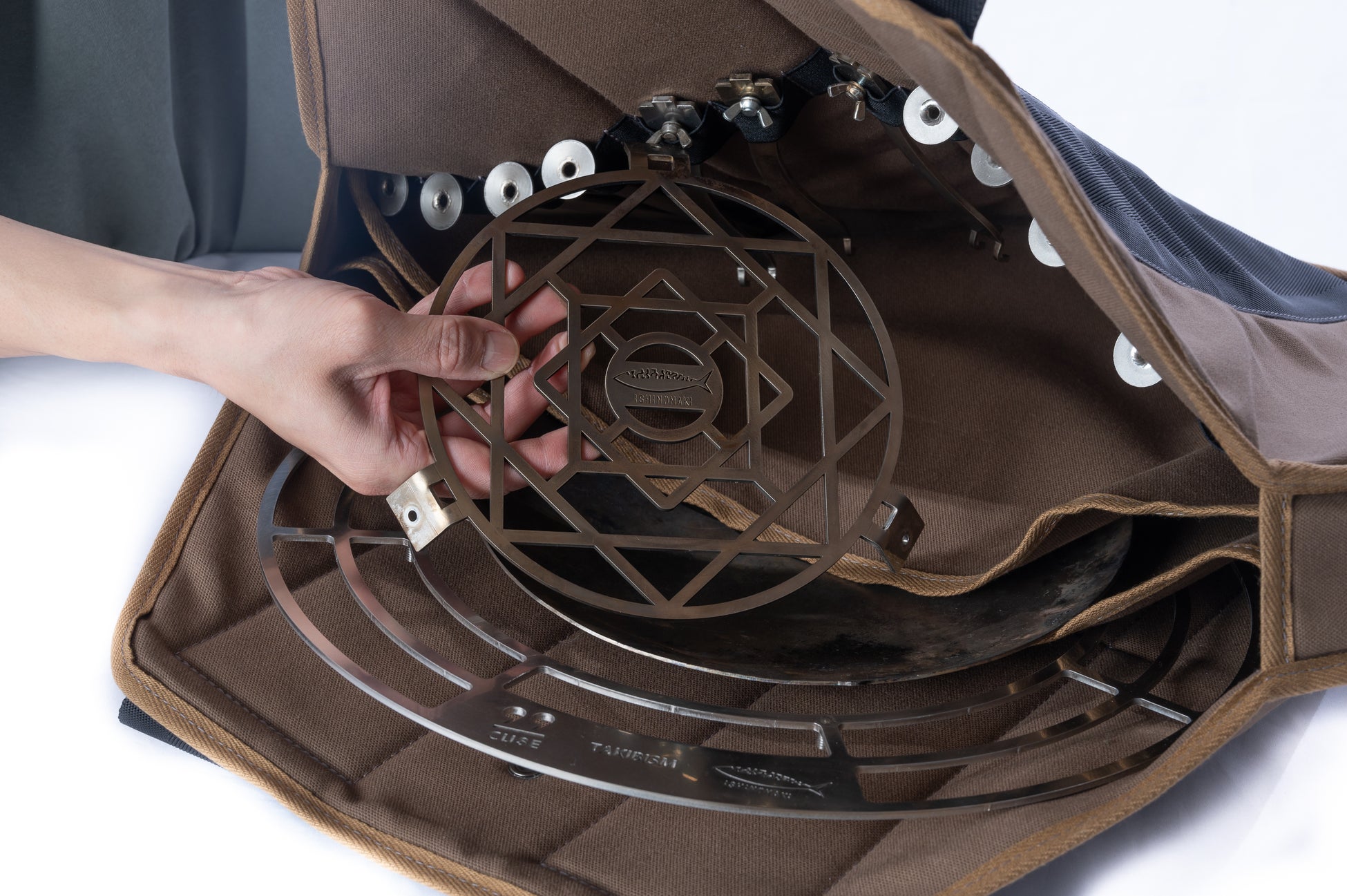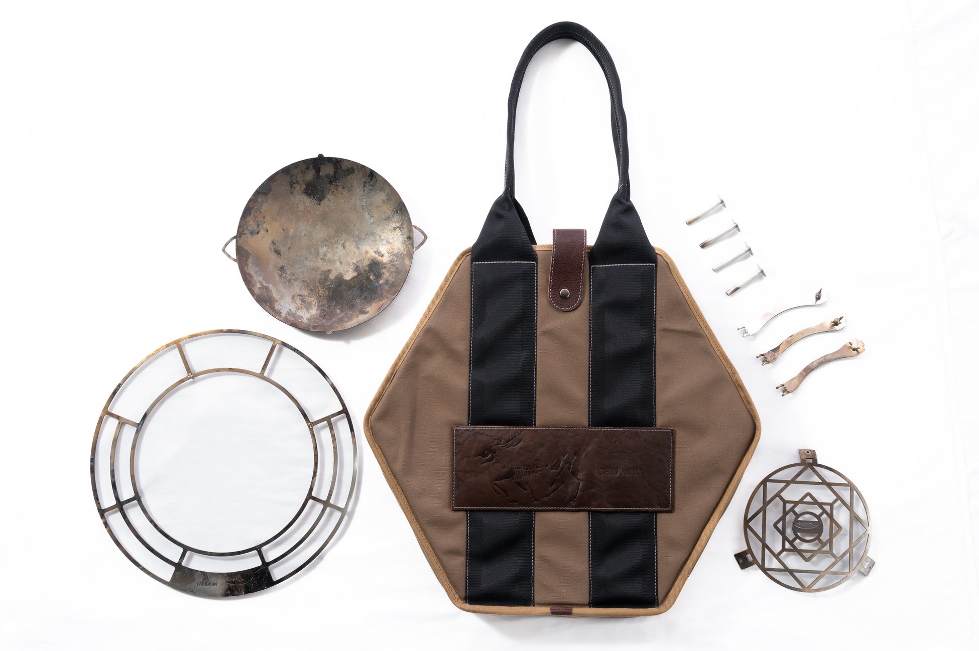 「鹿の骨」はTAKIBISM x ISHINOMAKIプロジェクトの焚火台や五徳のほか、TAKIBISM JIKABI LやTAKIBISM JIKABI Sにも対応し、構成するすべてのパーツが収納可能な、大型で機能性の高い構造となっています。