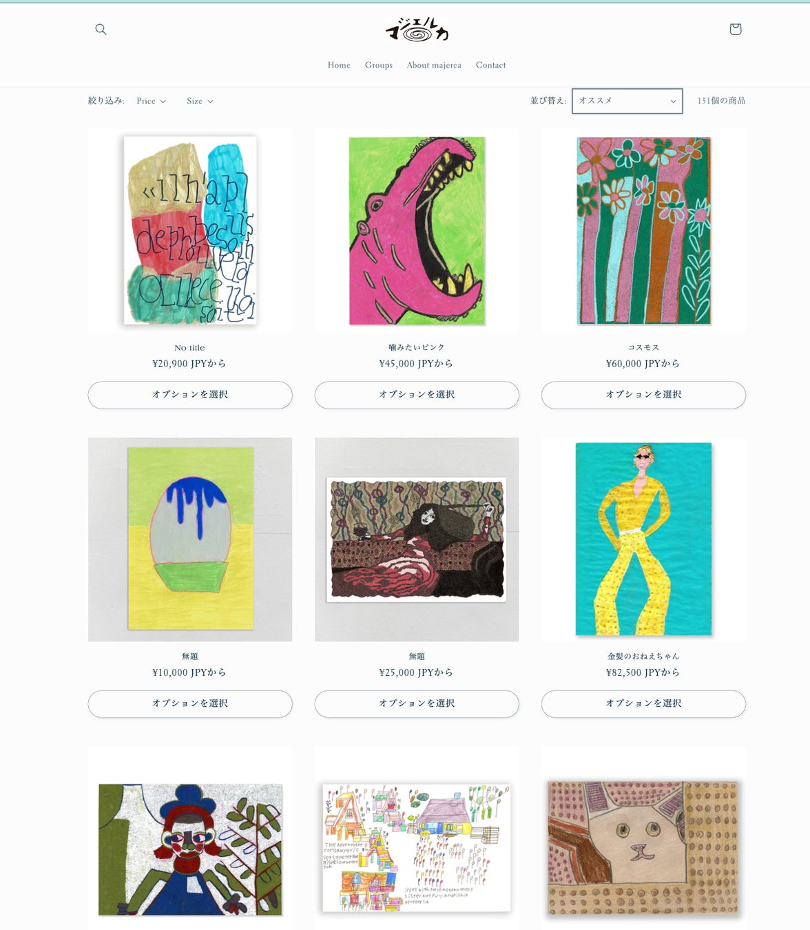 現在扱うのは 151点のアート。第一弾として、アート活動を行う「嬉々‼CREATIVE(キキクリエイティブ)(神奈川)」と「Swing(京都)」の二つの障害者施設の所属アーティストの作品を揃えた。今後更に全国の障害者施設と提携し作品を増やして行く予定。価格は6,600円~83,000円で、手に取りやすい1万円台の作品も多い。