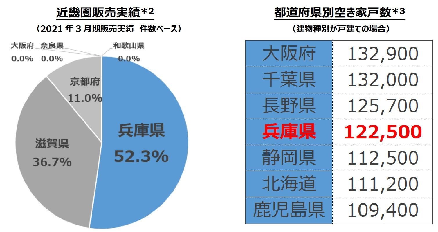 宝塚店が存在する兵庫県は、近畿圏*¹における弊社の販売実績のうち半数以上*²を占めるエリアです。兵庫県は都道府県別空き家戸数が全国で4番目*³に多く、深刻な空き家問題を抱えていると言えます。この度の新店舗開店を空き家問題の解決に繋げ、あらゆる人が「住みつなぐ」ことで、住まい環境が豊かになる社会を実現してまいります。