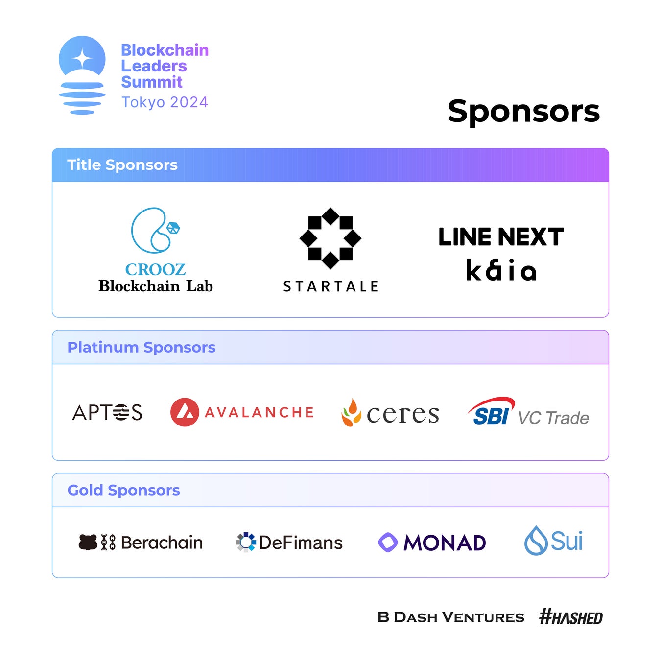 B Dash VenturesとHashed、「Blockchain Leaders Summit Tokyo 2024」のスポンサーを発表