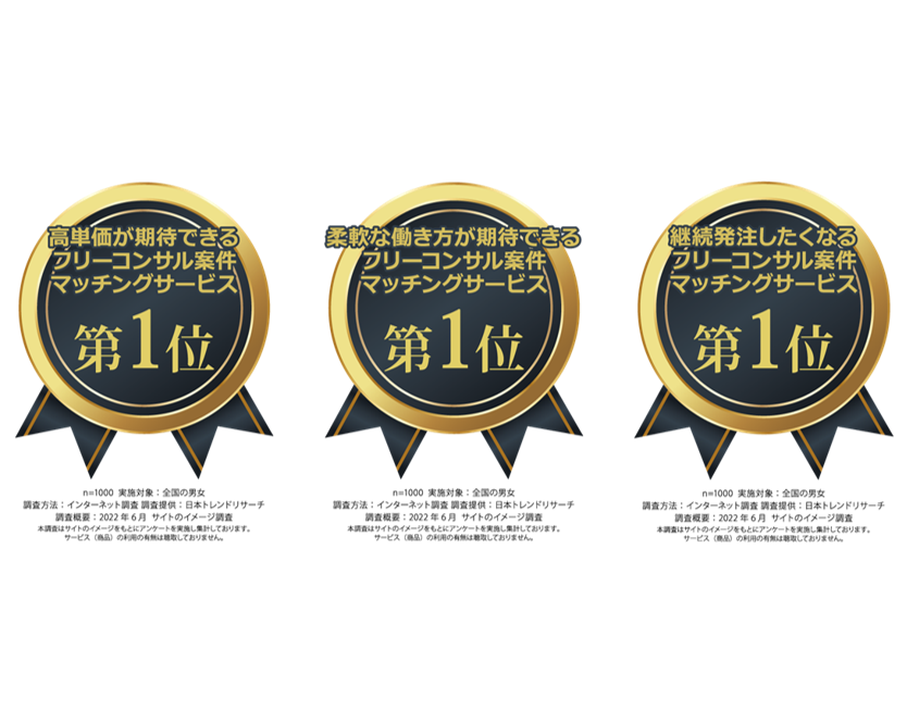 今回、「フリーコンサル案件マッチングサービス」を対象としたカテゴリーで3冠を達成することができ、大変嬉しく思っています。