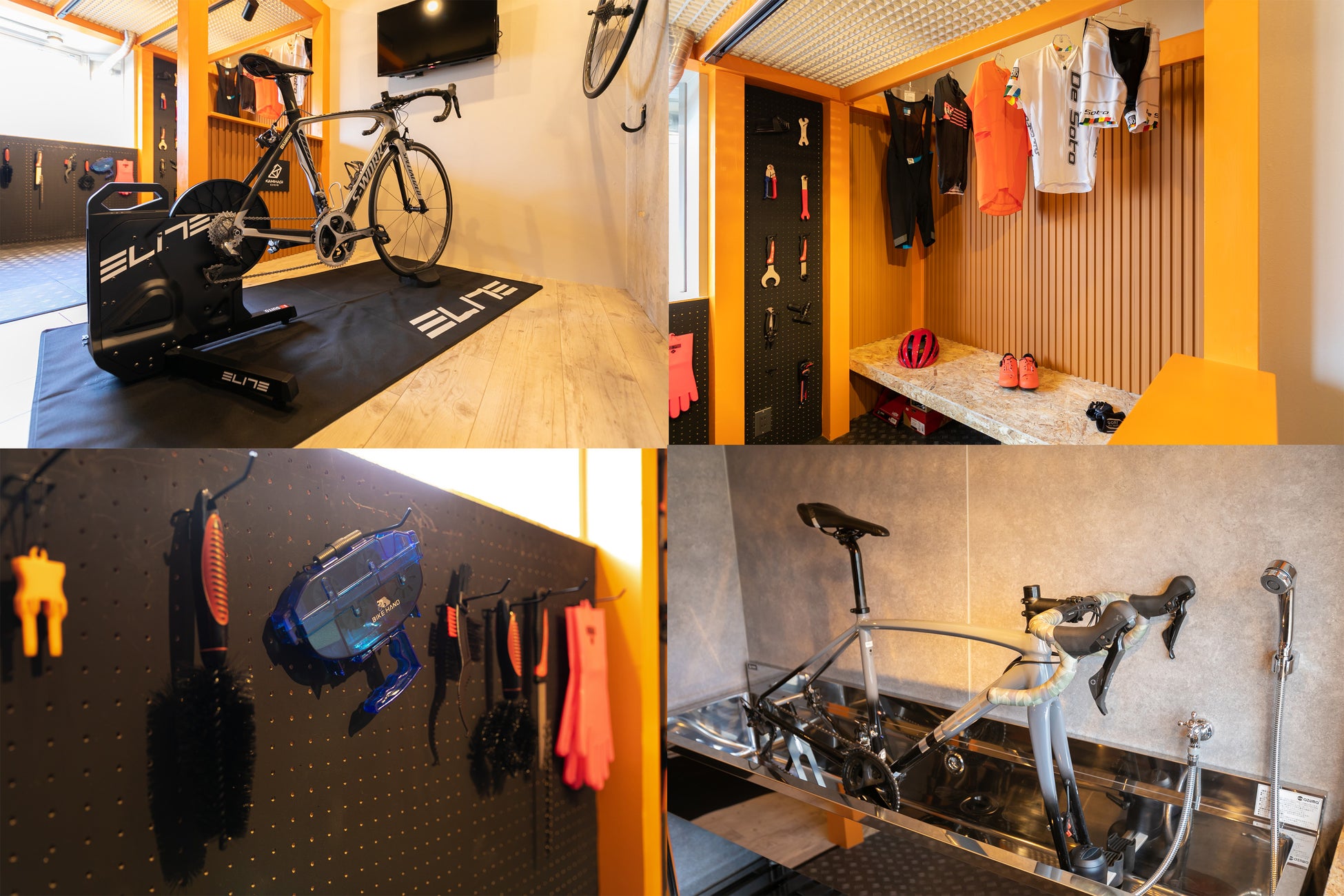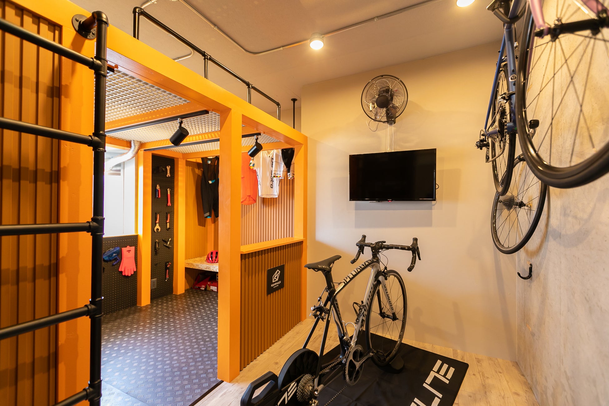 メンテナンスとトレーニングを天気や時間を気にせず思いっきり楽しめるよう、 物件の一室を自転車好きな人のためのガレージ仕様に改装。