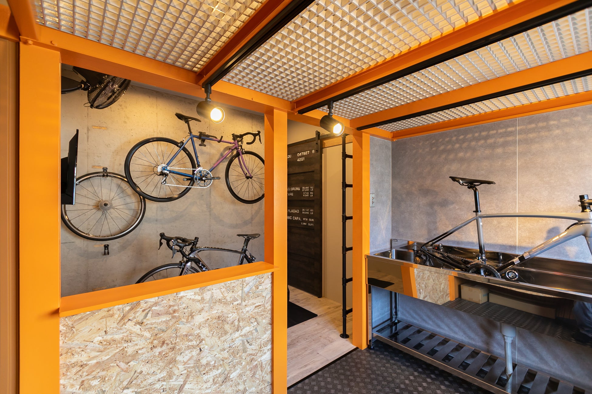 自転車好きな方が本当に満足できる物件を制作するために、自転車のプロに監修を依頼しました。愛知県内に5拠点展開する自転車専門店「カミハギサイクル」とコラボレーションし、実際のサイクリストが求める仕様に近づけるよう、バーチャルライドの設備の導入や、洗車できるシンクを設置するなど、中級~上級者まで満足いただける部屋に改装しています。