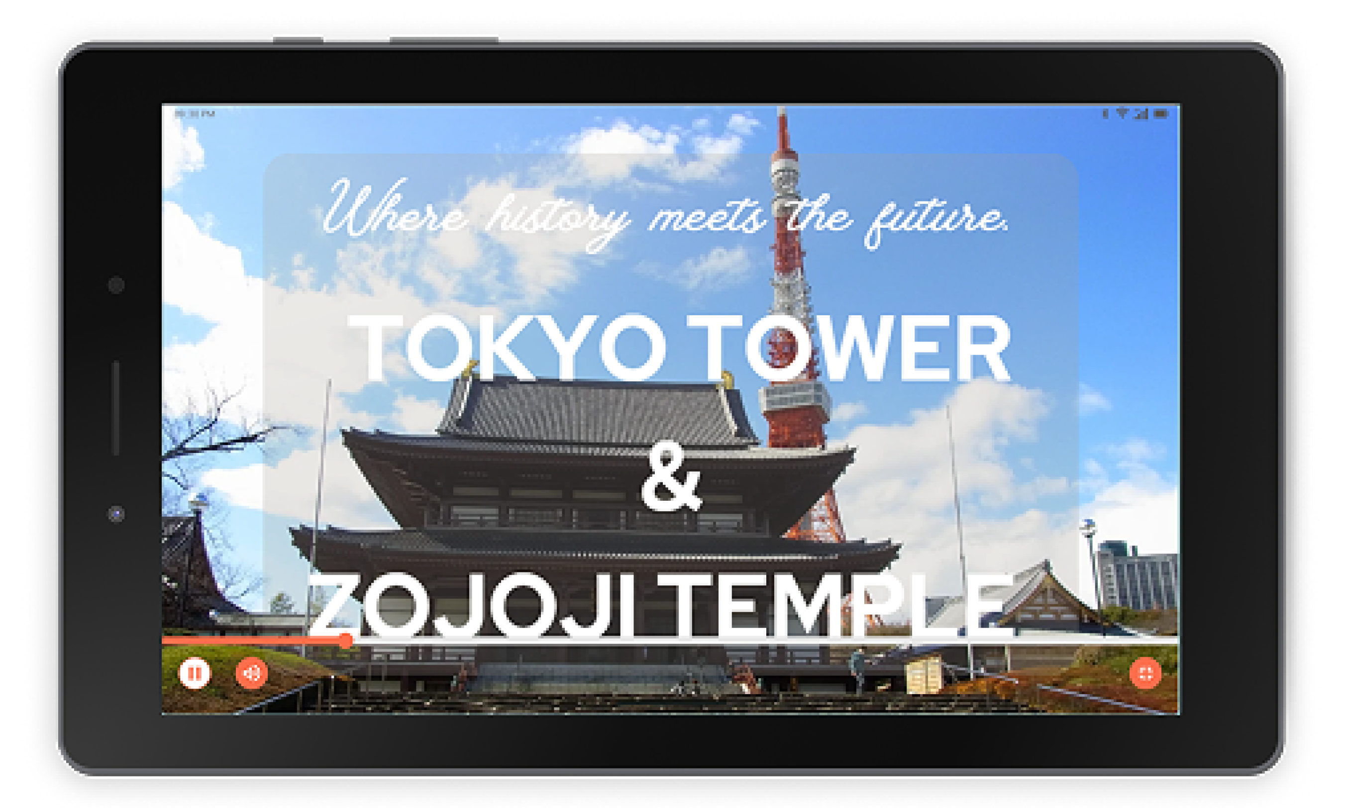位置情報と連動した動画配信機能:タブレットのGPSと連動し、観光スポットに応じた映像を適切なタイミングで自動配信。