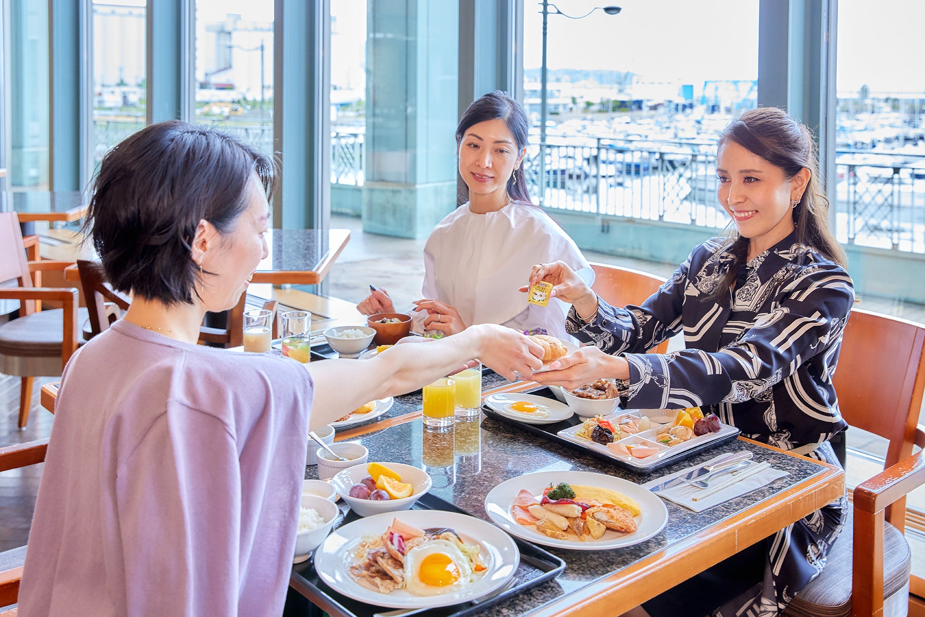 朝食会場となる「テラスブラッセリー」からは、小樽港マリーナと石狩湾を一望できる絶景が広がり、開放感あふれる空間で、心地よい朝のひとときをお過ごしいただけます。