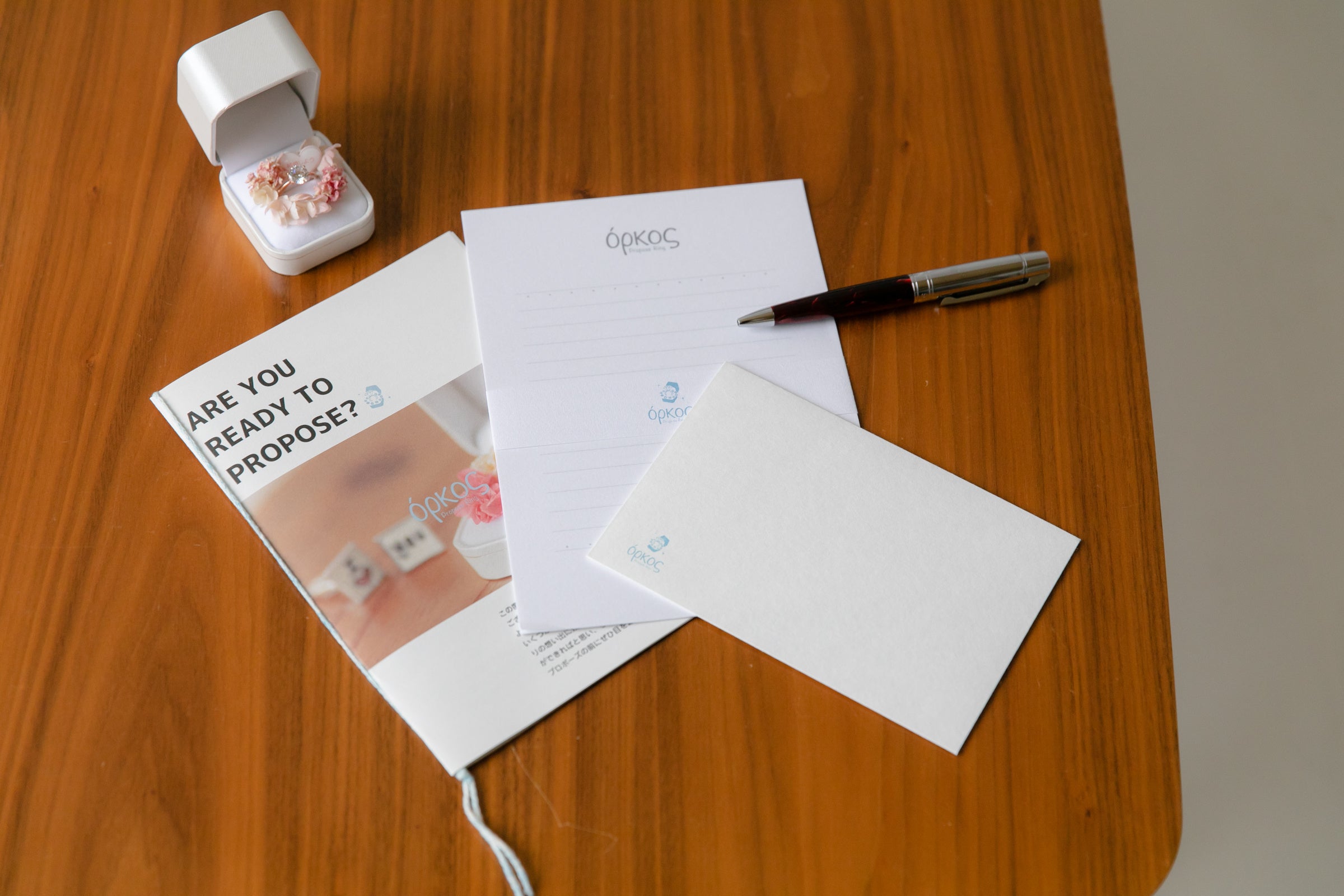 彼女への想いと覚悟がしっかり伝わるプロポーズ成功をさせるため、オルコスでは『プロポーズの手引き』と『越前和紙のレターセット』を同封しています。