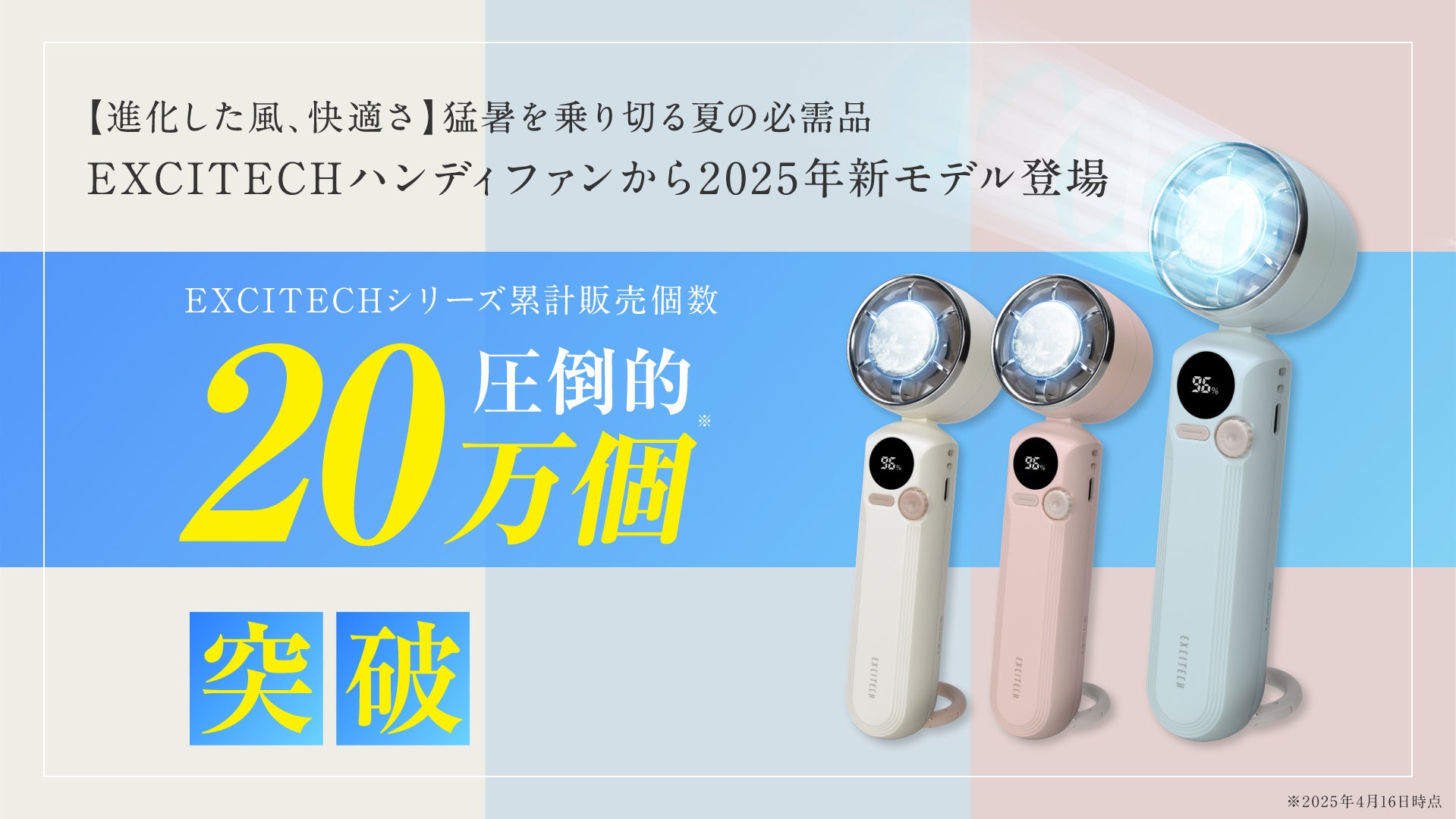 「本当に必要とされる商品を世界に流通させる」という理念のもと、数多くのベストセラー商品を世に送り出してきた株式会社Extage(大阪市中央区、代表取締役社長:野口拳大、以下「Extage」)は、当社が手がけるシリーズ累計20万個を突破する人気ブランド「EXCITECH(エキサイテック)」から、 ICE HANDY FANの改良モデルを2025年5月10日より発売いたしました。より強く、より静かに、そしてより軽やかに。今年の夏も、快適を届けます。