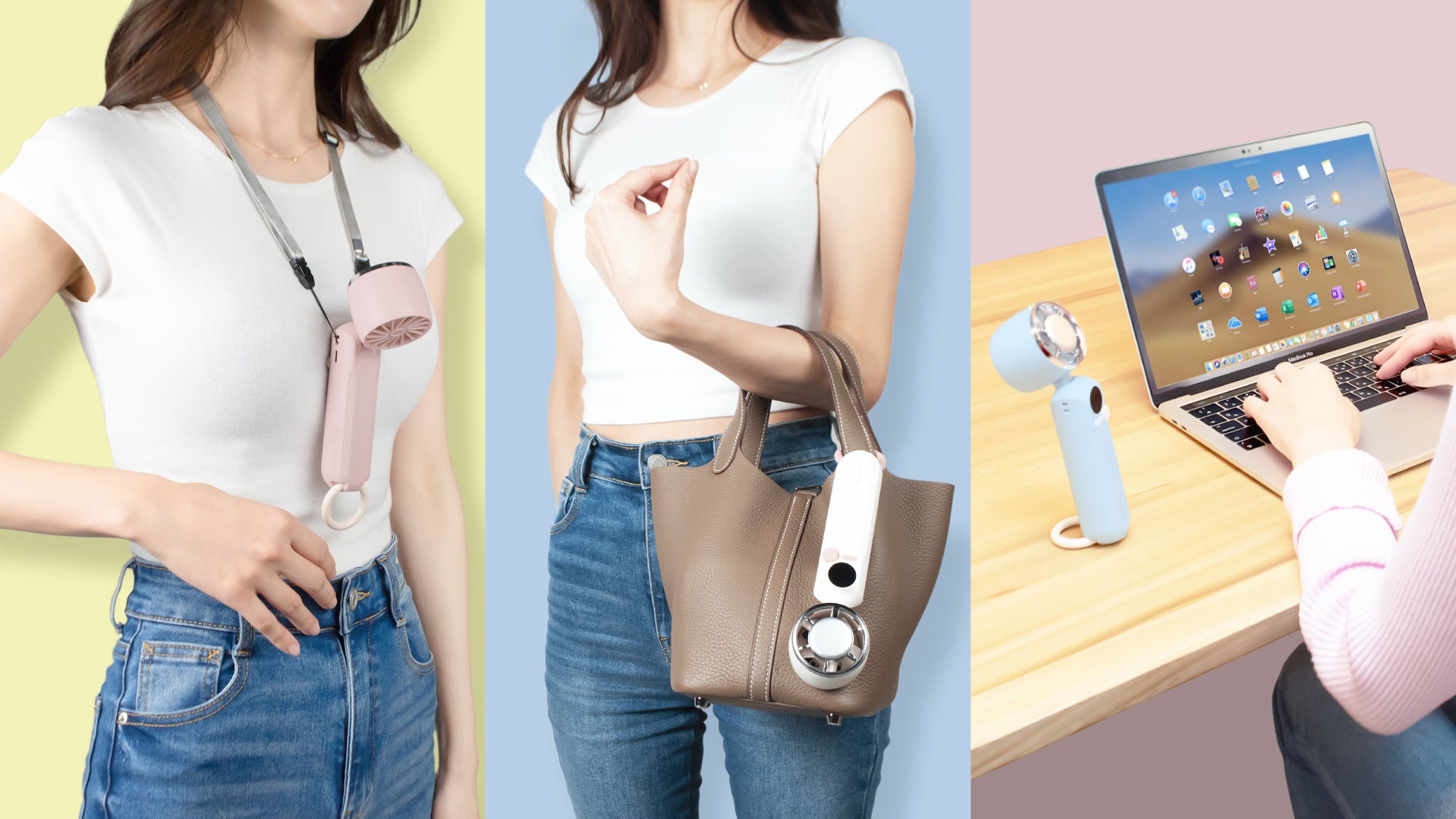 ウィンドウショッピングやお出かけなど、長時間の持ち運びでも疲れにくく、ハンズフリーで使える首掛けストラップとフック付きなので、長時間滞在するショッピングやアウトドア、屋外イベントなど、さまざまなシーンで両手を自由に使いながら快適な涼しさを楽しめます。