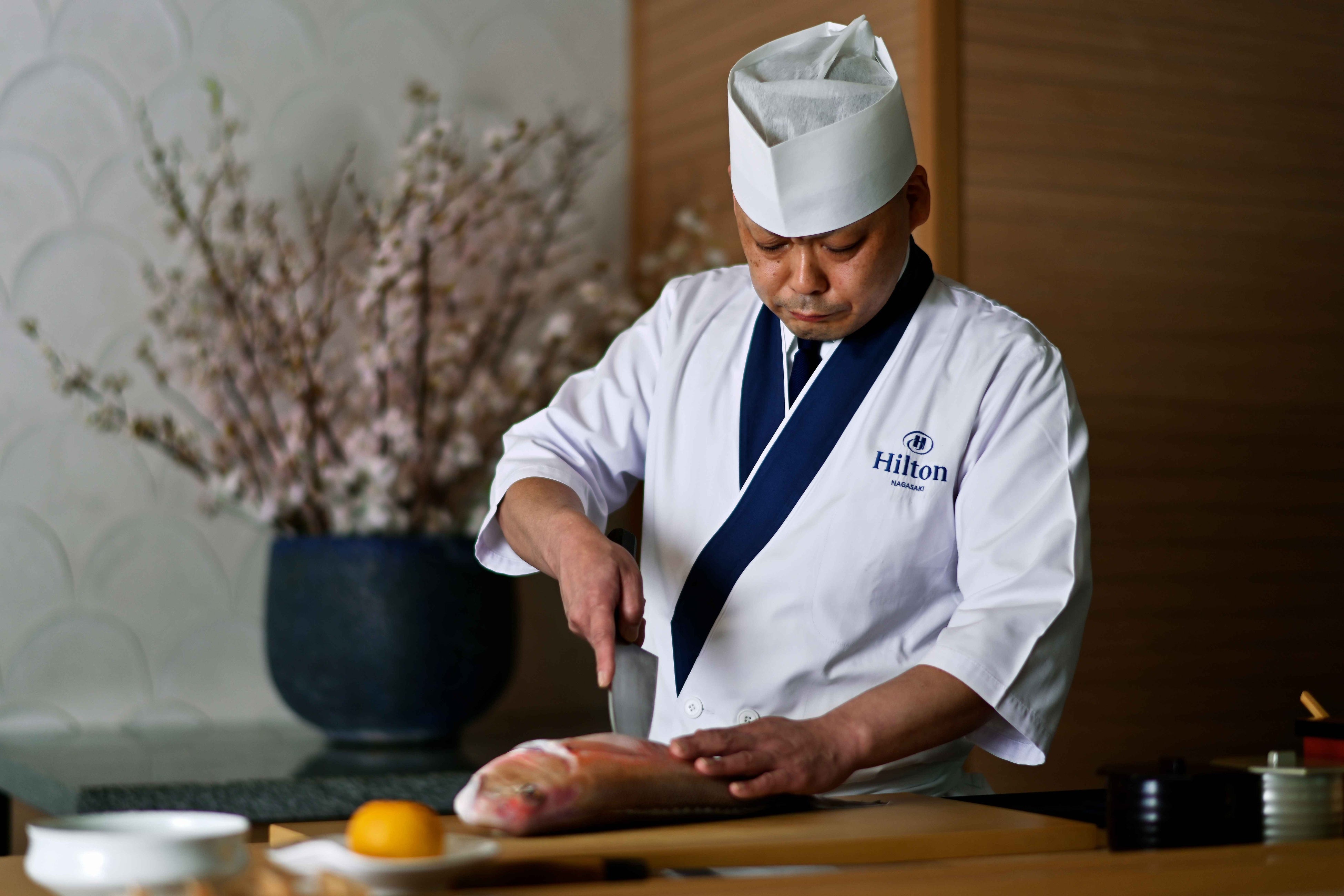 ヒルトン長崎(長崎市尾上町/総支配人 鈴木英夫)では、館内の「日本料理 瓊鶴海(たまつるみ)」で提供する寿司を「長崎前(ながさきまえ)」として今年1月より提唱。長崎の魚の個性を最大限に引き出す職人の技術と独創を、”長崎での旅の体験”として、国内外から長崎へお越しになる旅行者へ提供するとともに、水揚げされる魚の種類全国1位の長崎の魚の多彩さと魅力を広く配信してまいります。