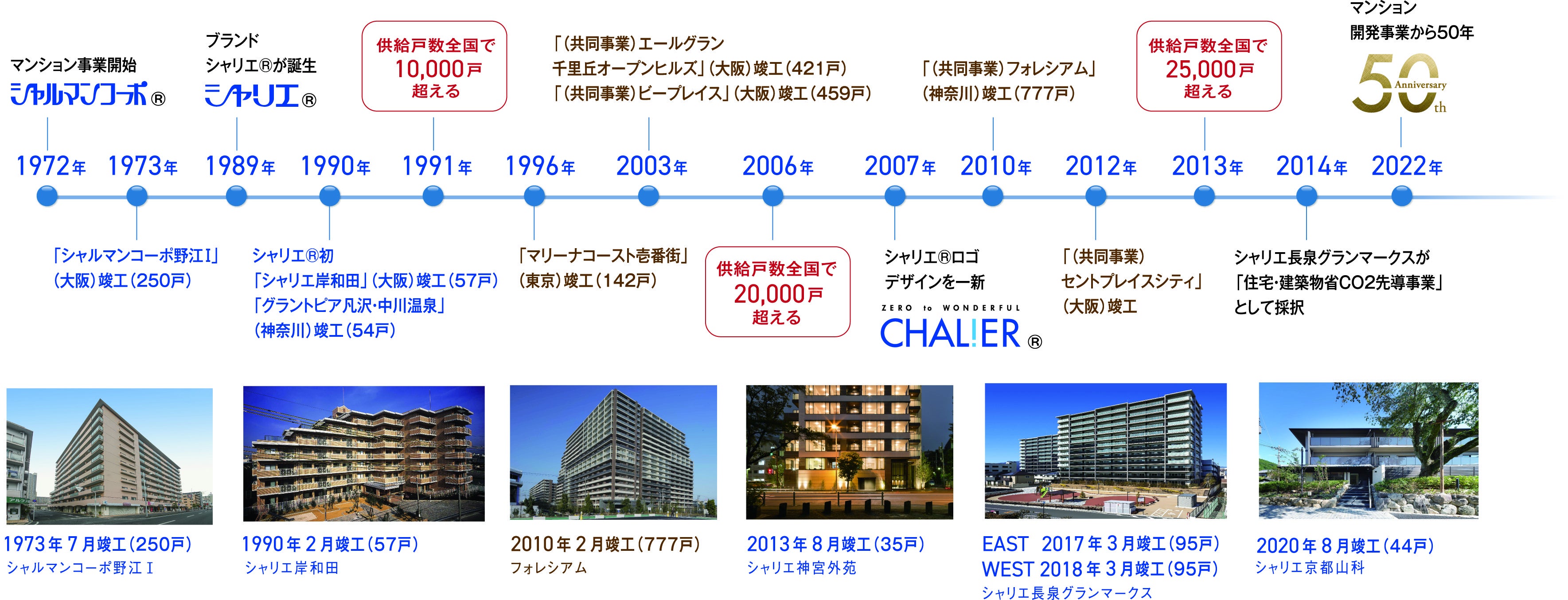 当社は1972年に初めてマンションを供給して以来、50年という長い年月の中において、お客様からいただいた信頼をもとに、分譲マンション事業を進めてまいりました。