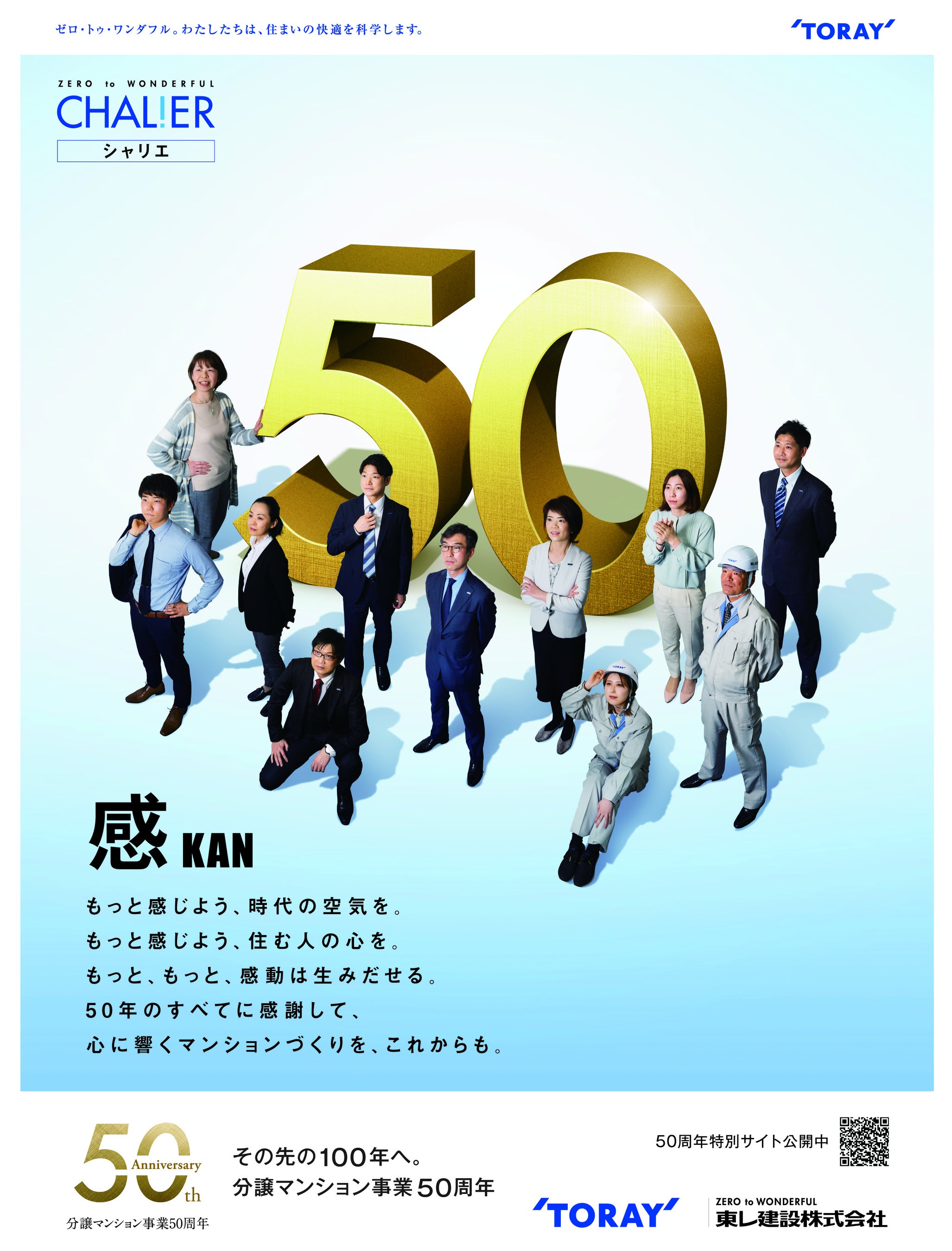 東レ建設株式会社(本社:大阪市北区/代表取締役社長:角川政信)は、2022年4月に分譲マンション事業50周年(※1)を迎えます。