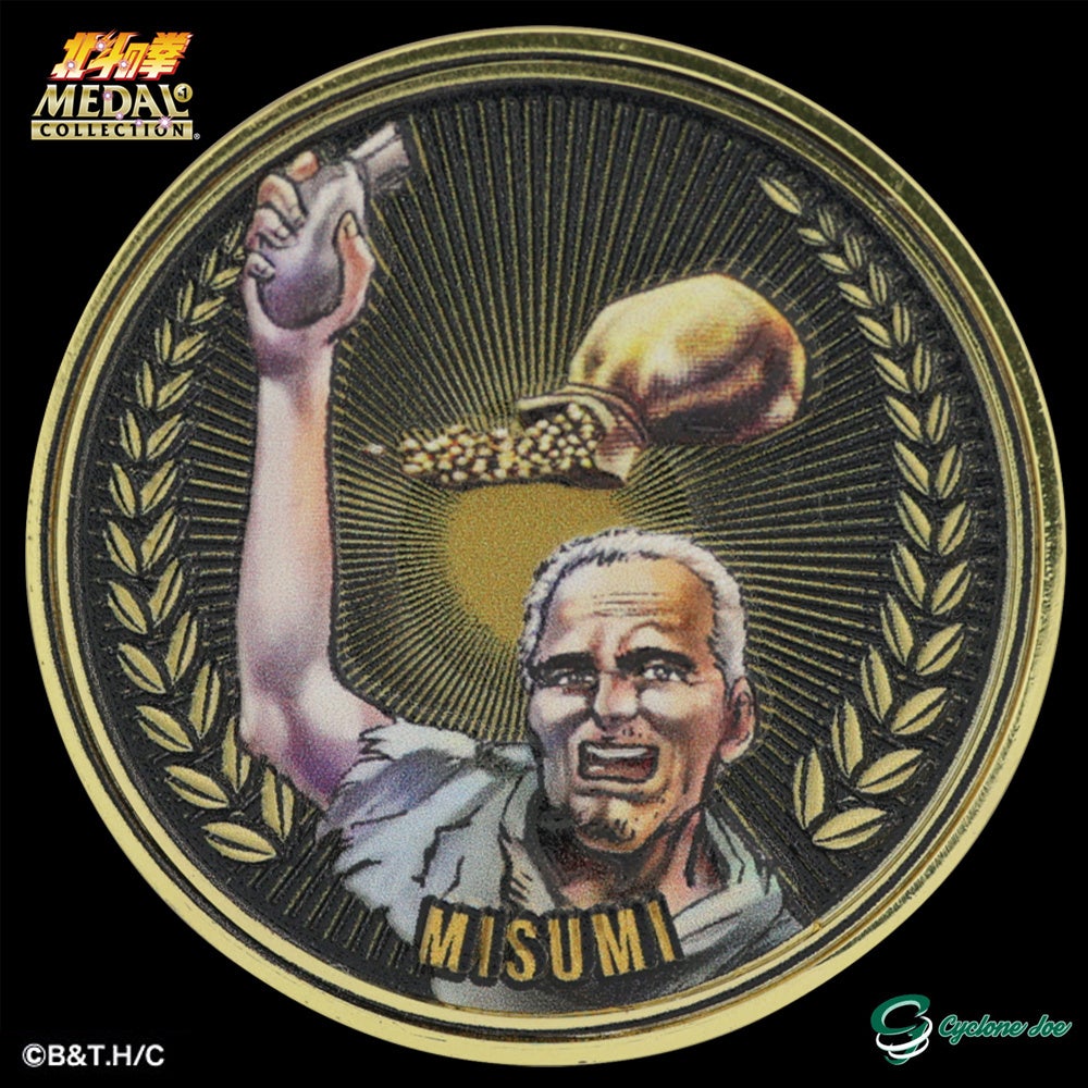 劇中に登場する通貨単位である『ジュドル』と、コミックス第1巻に登場し、暴力が支配する世となった世紀末で、強者の欲望に翻弄される村人として、ケンシロウや、読者の印象に強く残った名キャラクター“種籾じいさん”こと『ミスミ』が「今日より明日なんじゃ」と命がけで村へ届けた種籾を稲穂としてメダル裏面のデザインとして施した。