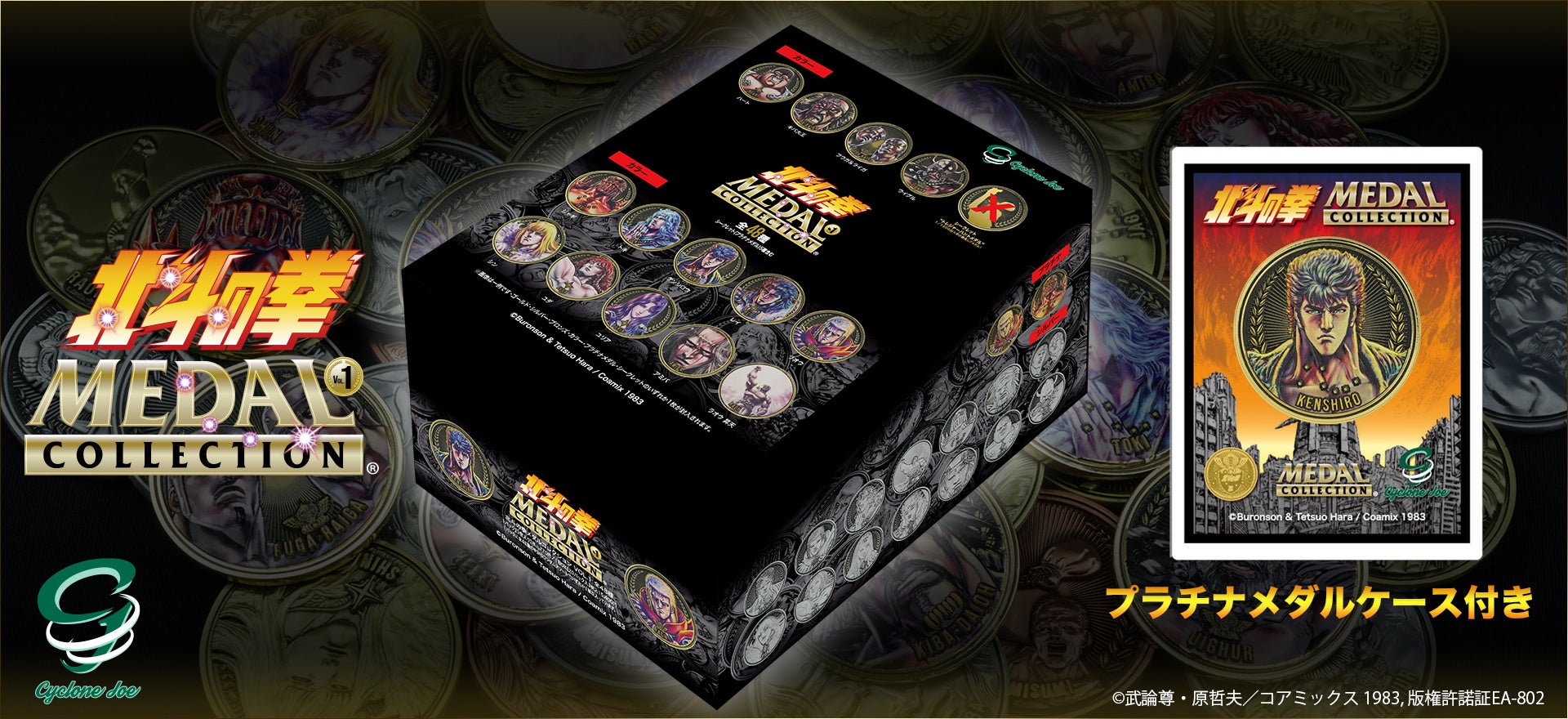株式会社サイクロンジョーは、人気漫画『北斗の拳』をテーマに、美しい造形美と彩色にこだわり、税込770円の低価格で気軽にコレクションできるホビーアイテム『北斗の拳 メダルコレクション VOL.1』を、2023年1月28日(土)より、サイクロンジョー直販、ネット通販各店、全国小売店で販売を開始する。