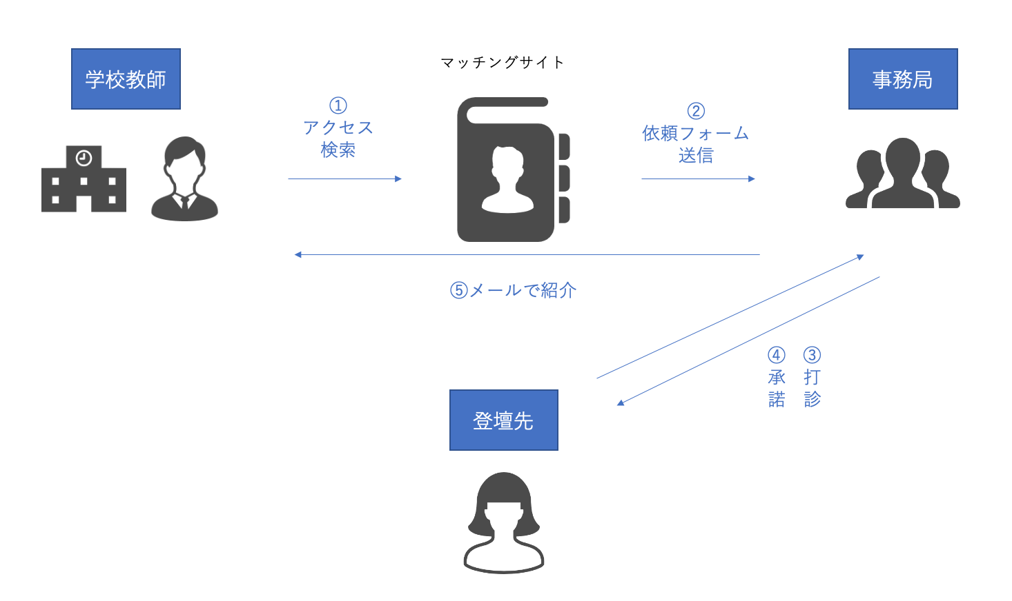 マッチング後は、双方にて趣旨説明、授業内容に関する相談を重ねて進めていただきます。