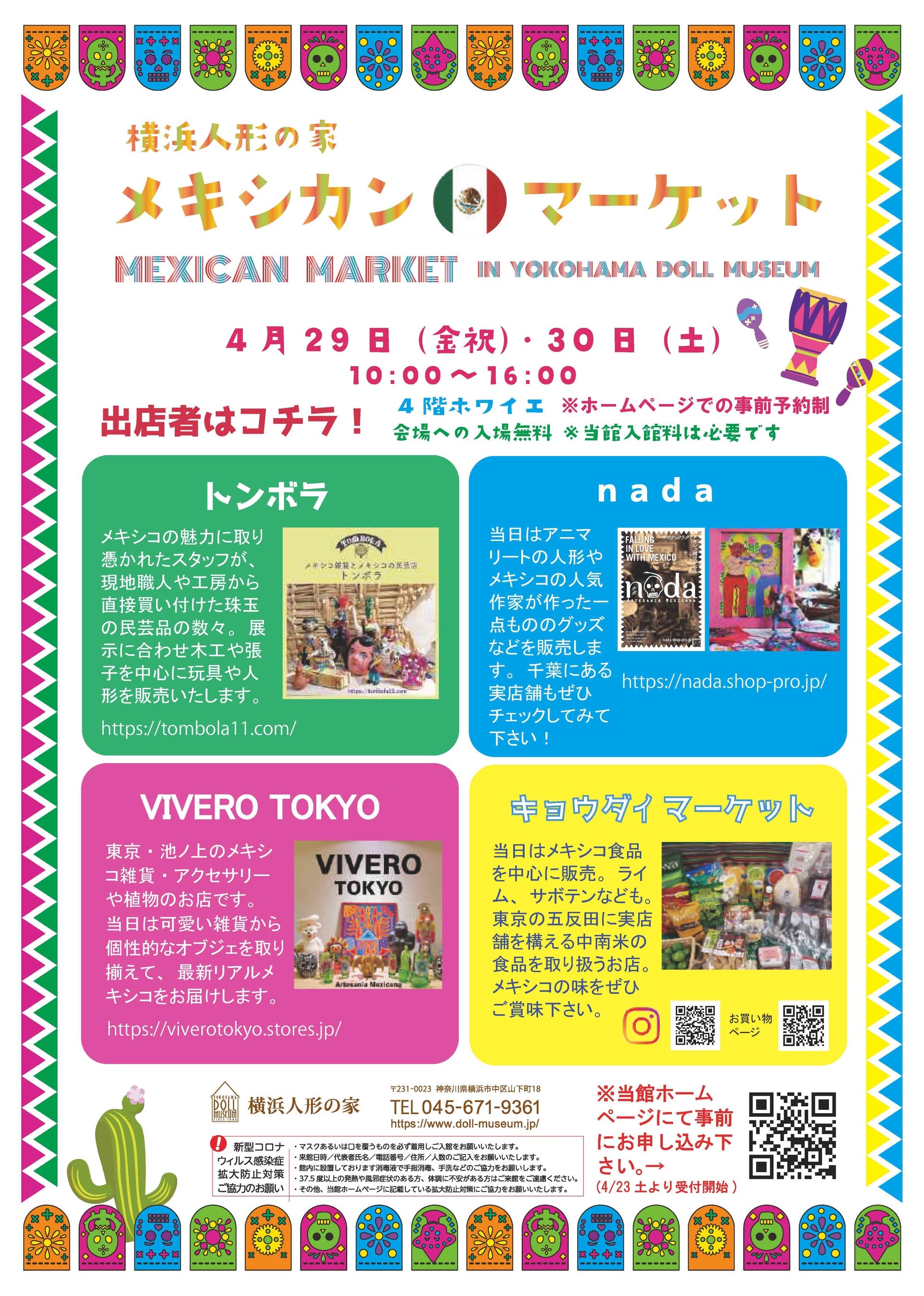nada(サポテックラグとメキシコ雑貨) /キョウダイマーケット(メキシコ・南米食品) / VIVERO TOKYO (メキシコ雑貨) /TOMBOLA~トンボラ (メキシコ民芸雑貨) ほか