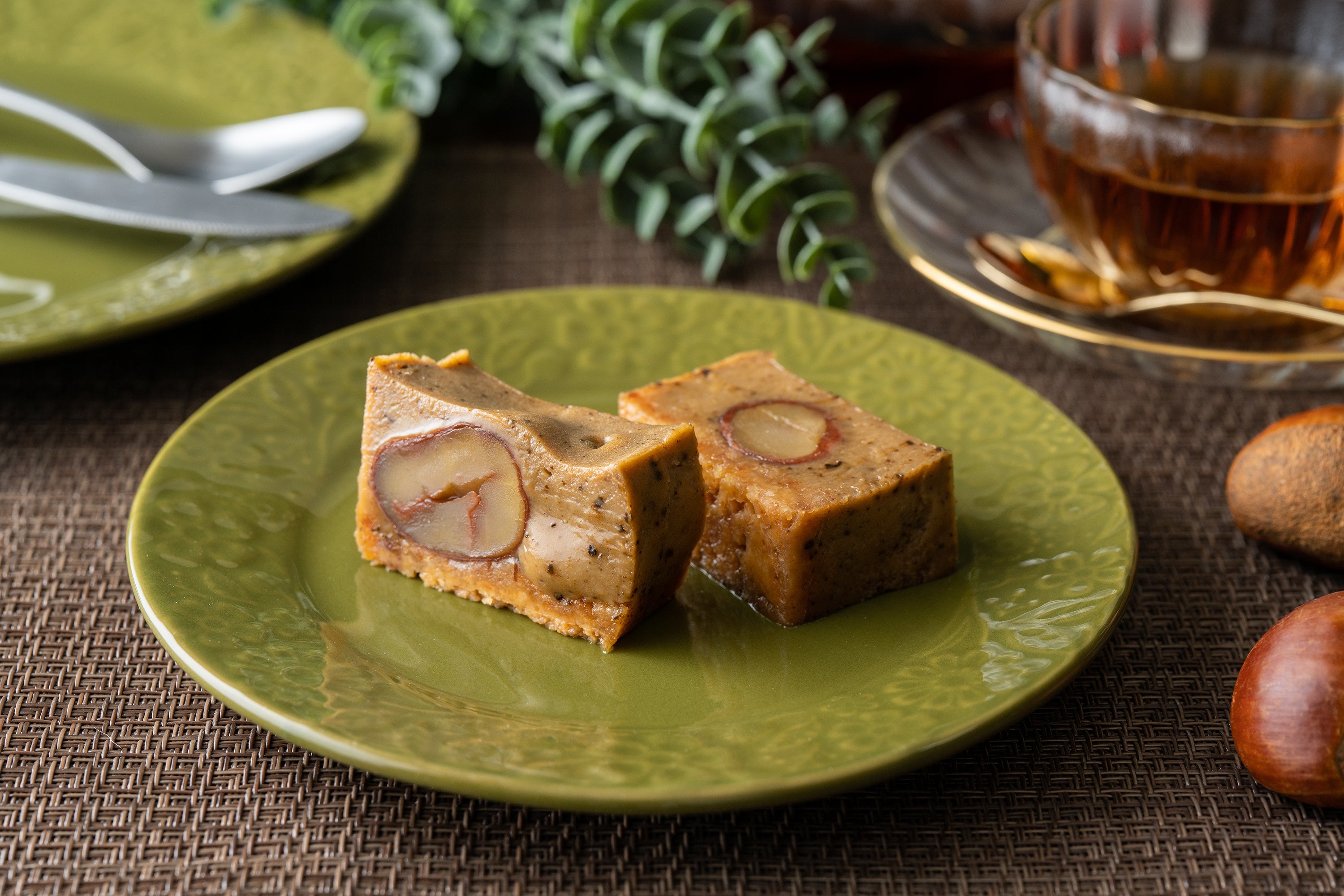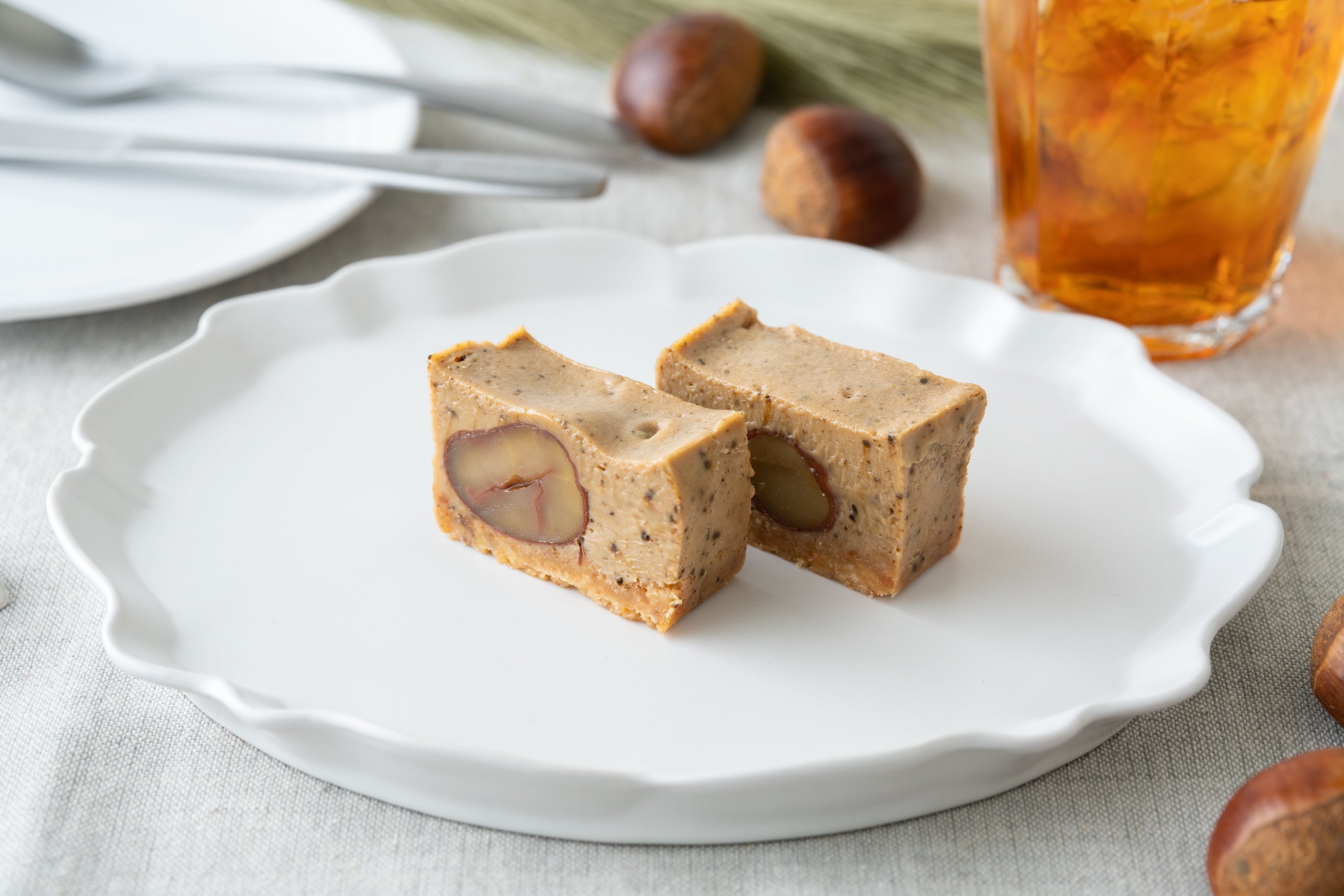紅抹茶に合う食材として選んだのは季節の果実でもある、栗。今回は栗本来の食感を楽しめるよう、渋皮が残ったままで甘露煮にしました。栗の甘さと紅茶の芳醇な香りがお互いを上手に引き立たせて、絶妙なハーモニーを奏でています。