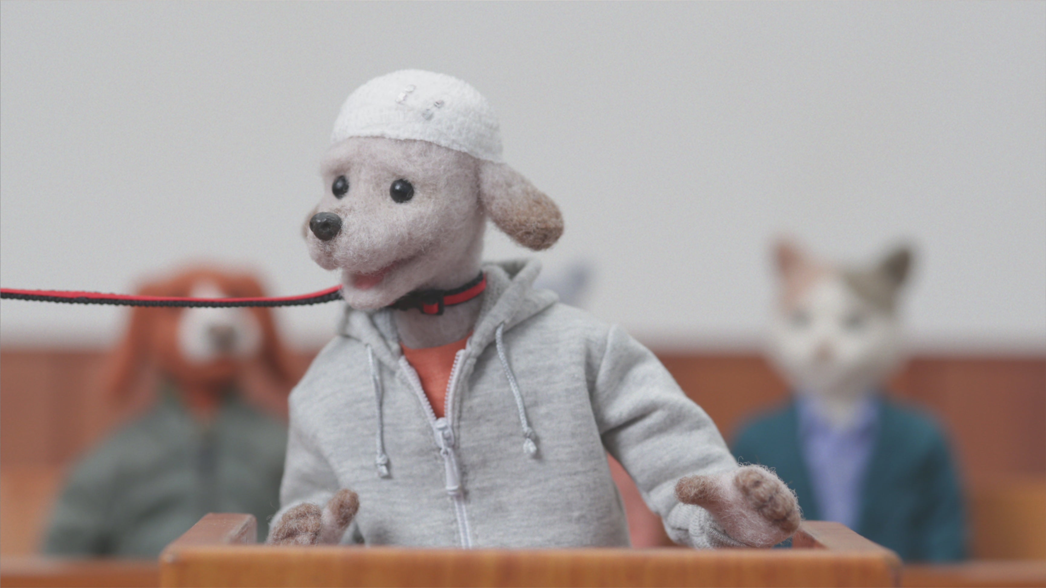 本動画は、イヌさんが「被害者」として証言台に立つシーンから始まります。