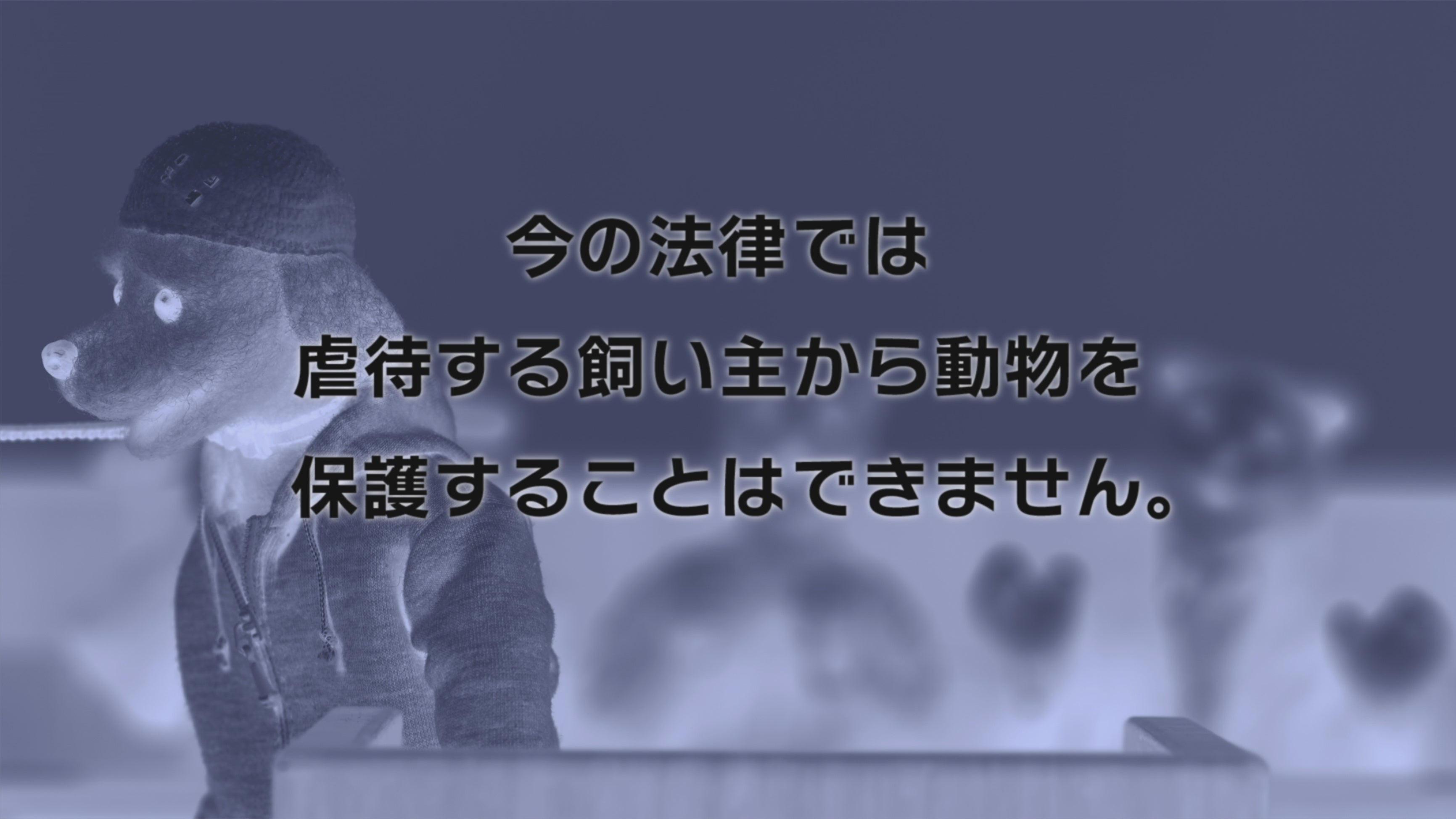 また今の法律では、本動画のように数多くの壁を乗り越えて裁判に至り、飼い主が動物虐待の罪で有罪判決を受けたとしても、飼い主が所有権を放棄しない限りは、ペットは飼い主の元に帰らなければなりません。