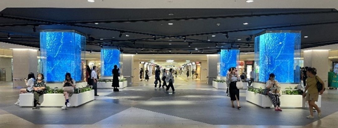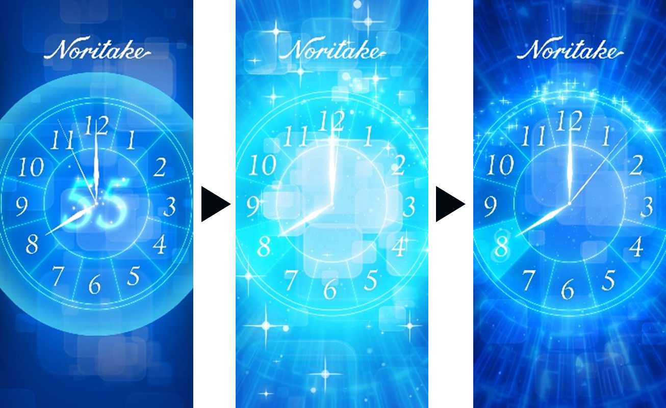 大同特殊鋼 Phenix スクエアは、栄(名古屋市)の地下街の1つであるサカエチカの中央に位置し、待ち合わせ場所として親しまれています。ここに設置されたLEDビジョンで、毎日正時をお知らせします。この時報は、ノリタケのコーポレートカラーであるブルーを基調とし、音※と映像で”未来に向かうノリタケの姿”を表現しました。