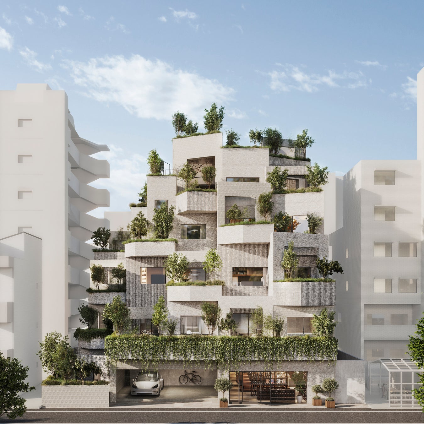 福岡中心街の喧騒から少し離れ、植栽によって街との境界を曖昧に。福岡らしい暮らしに溶け込む空気を纏う建築です。1階共用部