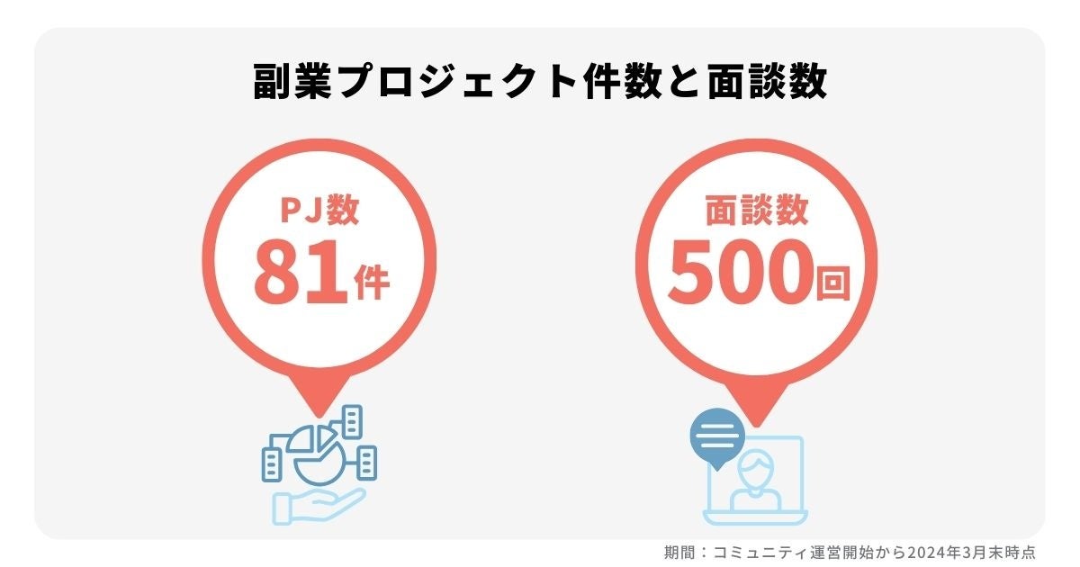 ■副業プロジェクト件数80件以上、キャリア面談を含む面談数は500回を突破