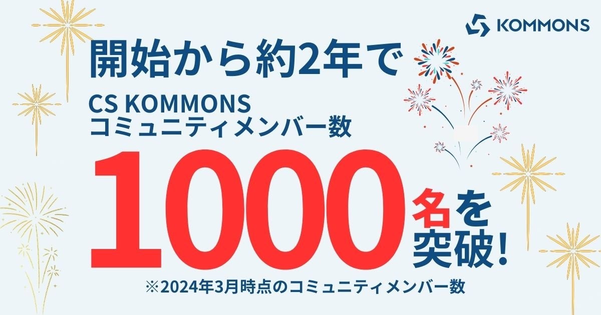 カスタマーサクセス(以下「CS」)キャリア支援サービスを提供する株式会社KOMMONS(所在地:東京都港区、代表取締役:白塚湧士、以下「KOMMONS」)が運営するCSコミュニティ「CS KOMMONS」ではこのたび、コミュニティメンバーが1,000名を突破したことをお知らせいたします。
