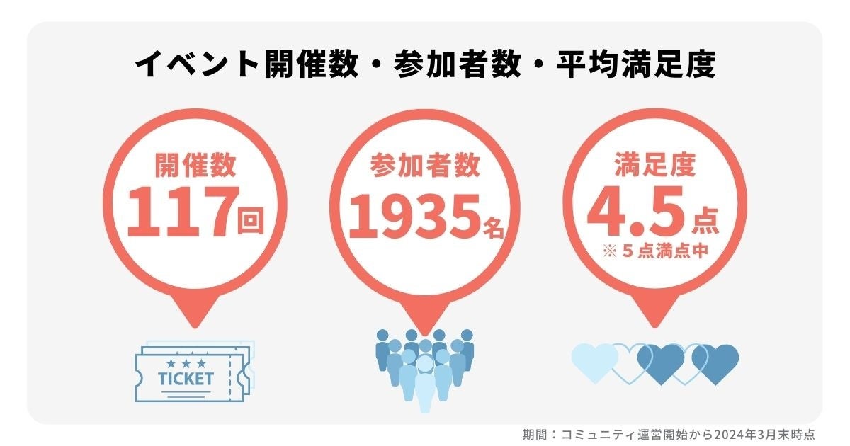 これまでコミュニティで開催されたイベント数は117回、のべイベント参加者数は1,900名以上、コミュニティイベントの平均満足度も5点満点中4.5点です。会社の垣根を越えてCS同士が交流する機会の提供や、情報提供をし合う場を生み出しています。