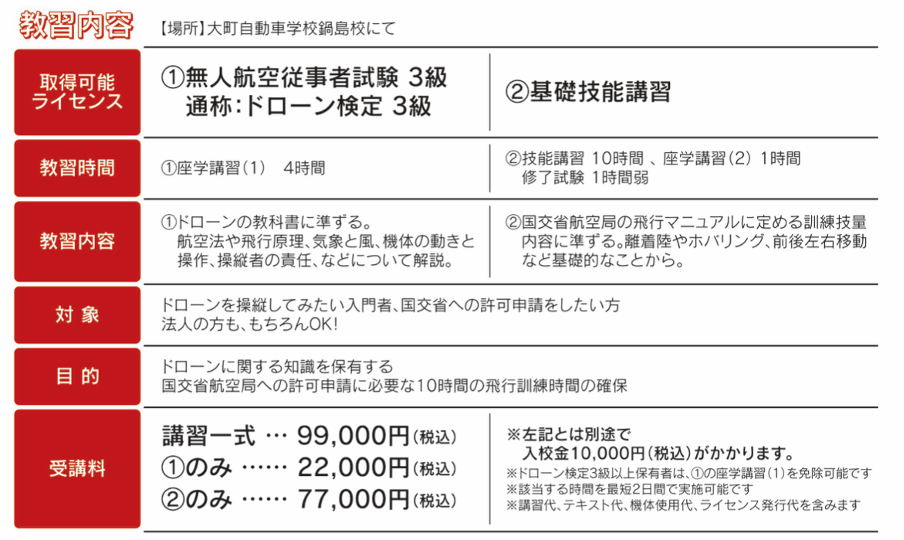 ①座学のみ(ドローン検定3級資格取得):22,000円(税込)