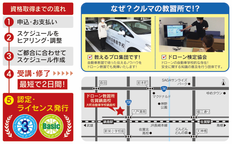 大町自動車学校鍋島校を運営する株式会社OMCN(所在地:佐賀県佐賀市鍋島、代表取締役:鶴田英司、以下 大町自動車学校)はこのたび、自動車学校併設型でドローン検定協会認定のドローンスクールとなる「ドローン教習所 佐賀鍋島校」を2022年6月7日にオープンいたします。スクール開講を記念して、先着で受講料無料モニターを募集開始いたします。