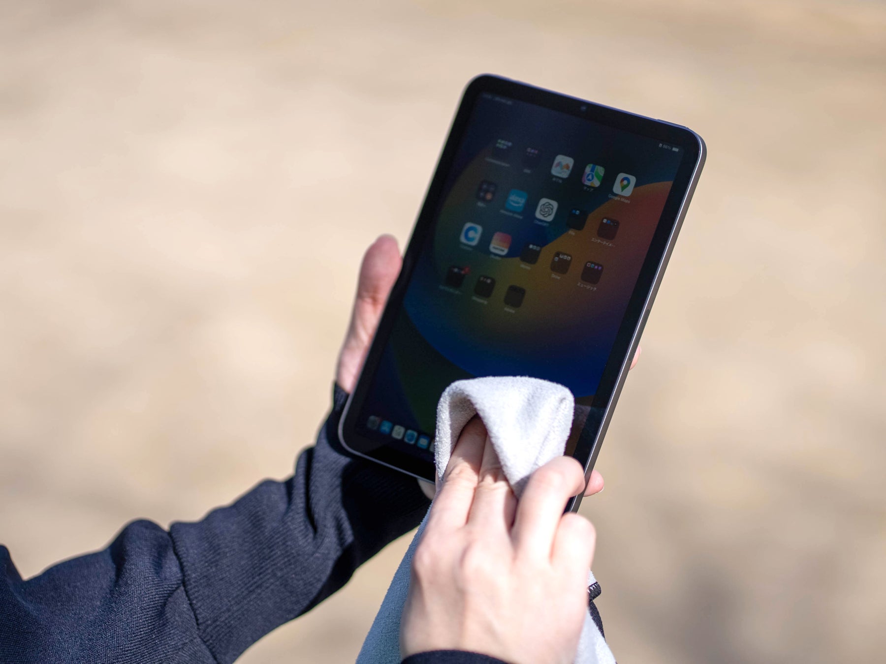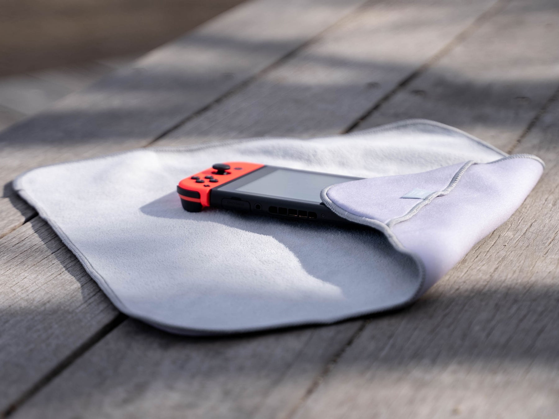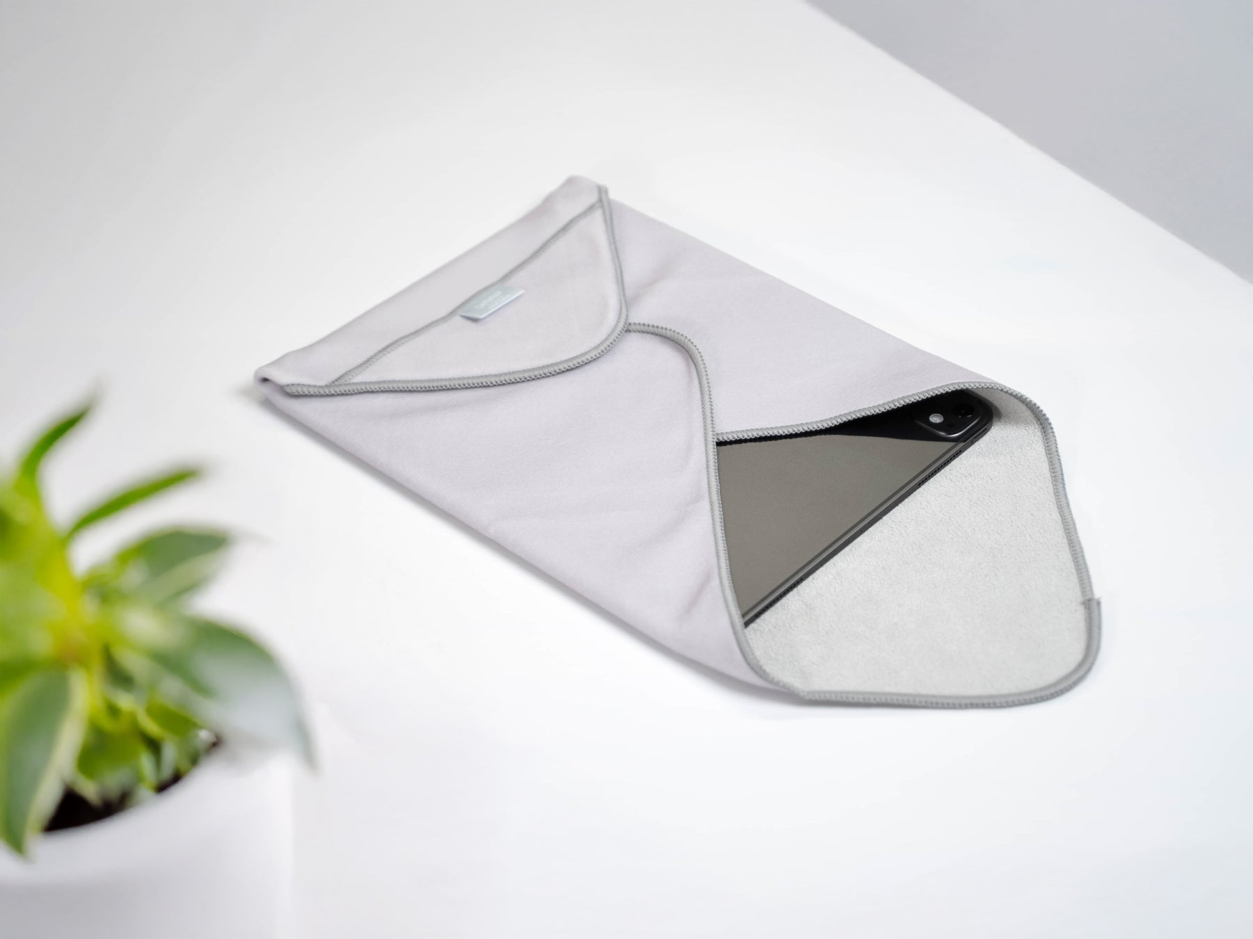 タオル生地のようなのファブリックなので指紋、油分、水滴を手軽にサッと拭き取るクロスとしても使用可能。
