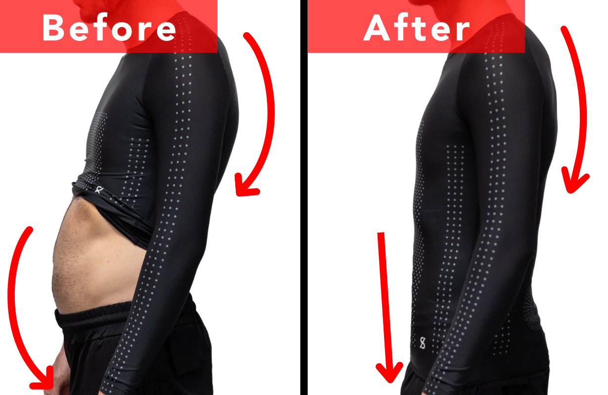 デスクワークやトレーニング中の姿勢が崩れやすい局面でも、強加圧により正しい姿勢をサポートしてくれます。