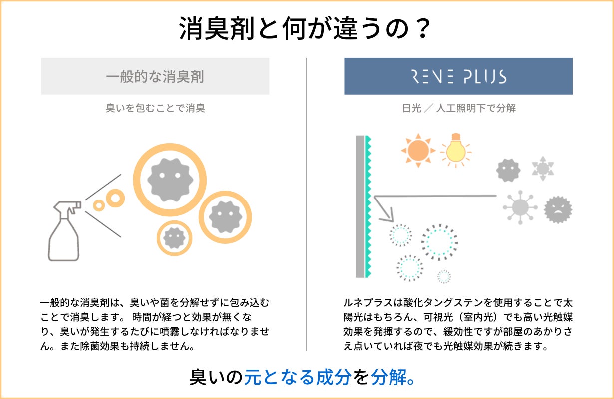 TOSHIBAとケミカルテクノロジー社が開発した光触媒「RENEPLUS(ルネプラス)」をTRUNK LONG SLEEVEの生地に施しています。