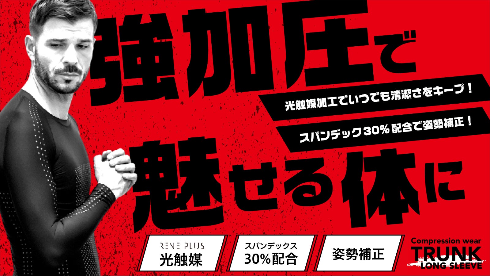 【好評第二弾】スパンデックス30%の強加圧!日常生活もまるでトレーニングに変える加圧シャツTRUNKの長袖タイプをsomatic(ソマティック)が開発。12/9よりMakuakeで先行発売中!
