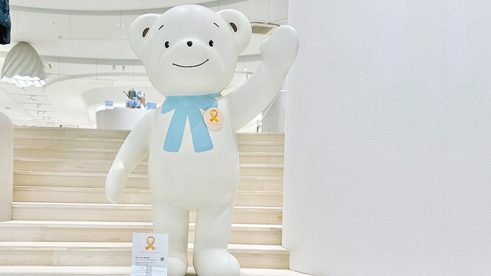 早稲田大学大学院経営管理研究科(早稲田大学ビジネススクール、以下WBS)の 「企業経営と社会変革ゼミ」は、株式会社ファミリア(兵庫県神戸市、代表取締役社長:岡崎忠彦、以下ファミリア)、認定NPO法人キャンサーネットジャパン(東京都⽂京区、理事⻑:岩瀬哲、以下CNJ)と共同で⼩児がん啓発キャンペーンを⾏います。9⽉の「世界⼩児がん啓発⽉間」に際し、9⽉1⽇〜9⽉30⽇の間、神戸本店と代官山店の2店舗にてファミリアのキャラクター「ファミちゃん」が、ゴールドリボンのバッジを身につけて小児がんの啓発を支援します。