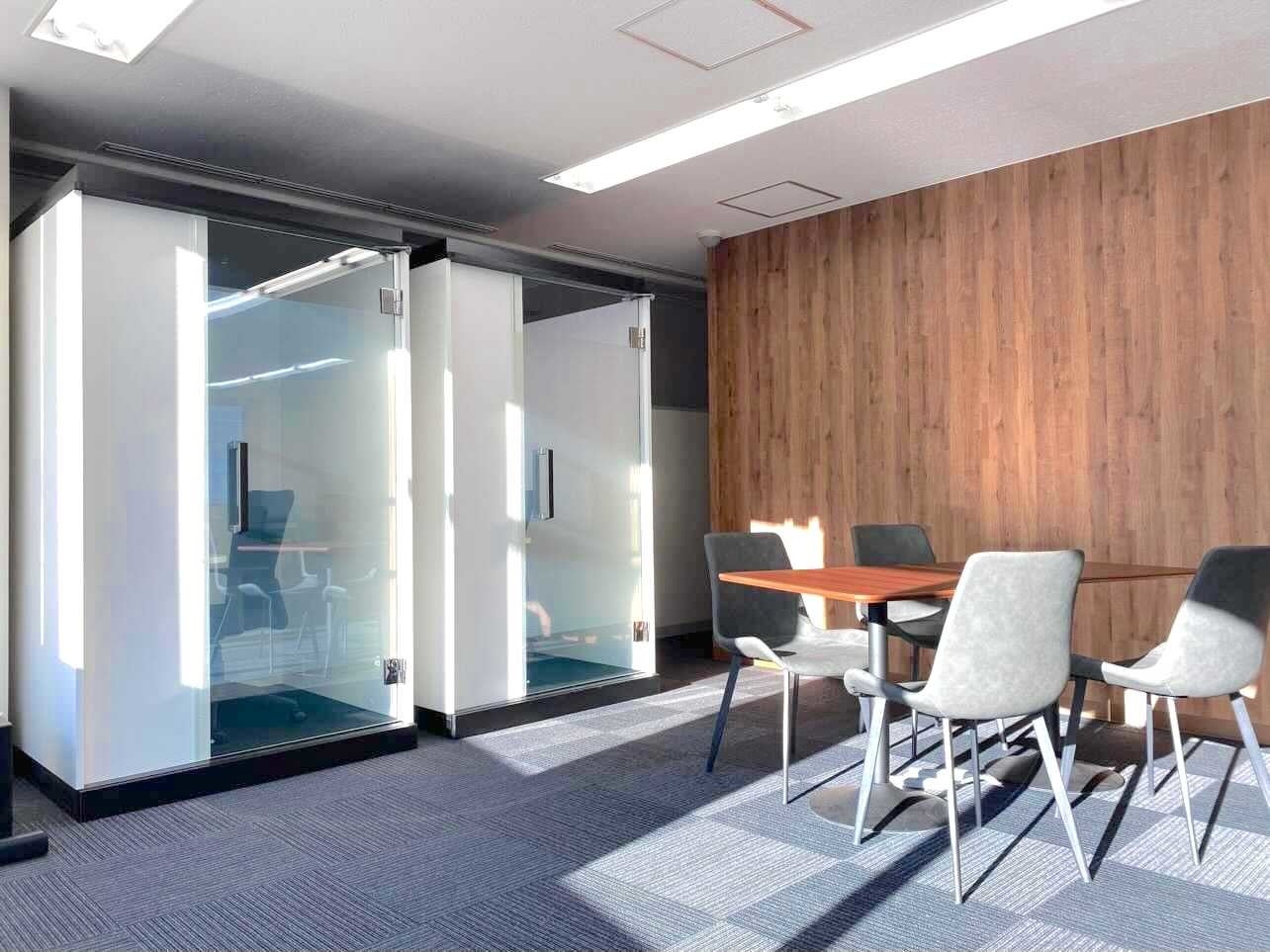 約60坪のオフィスの中に、執務スペースのほか、完全防音機能を搭載したオンラインミーティング専用ブースを設置しています。また、リラクゼーションスペースでは卓球台を設置し、休憩時間のリフレッシュや社内コミュニケーションの促進に活用することが可能です。