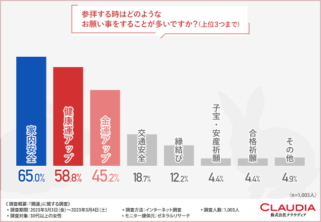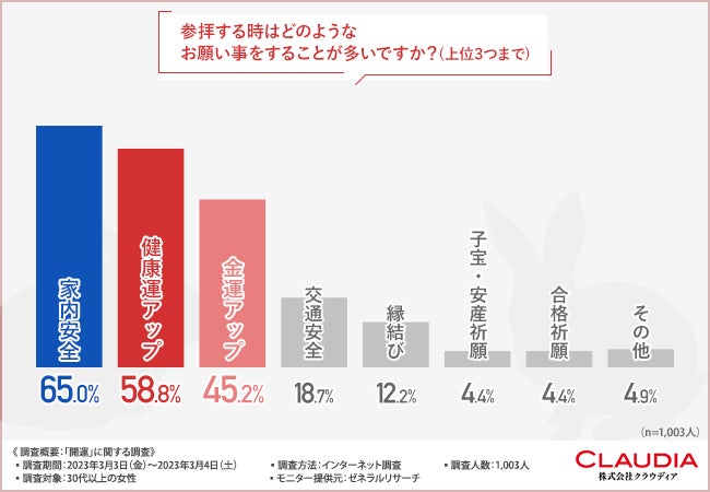 参拝時のお願いごとTOP3は「家内安全」「健康運アップ」「金運アップ」