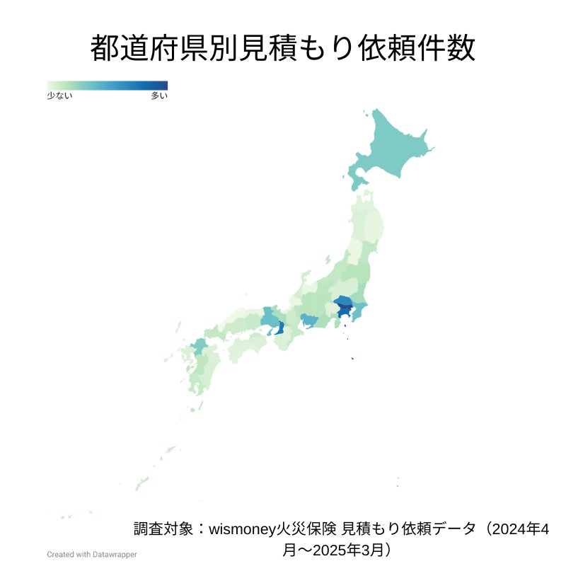 Mt.flowers株式会社(本社:東京都江東区)が提供する火災保険一括見積もりサービス「wismoney(ウィズマネ)」は、2024年4月〜2025年3月にかけて寄せられた見積もり依頼データをもとに、都道府県別の依頼傾向を分析いたしました。
